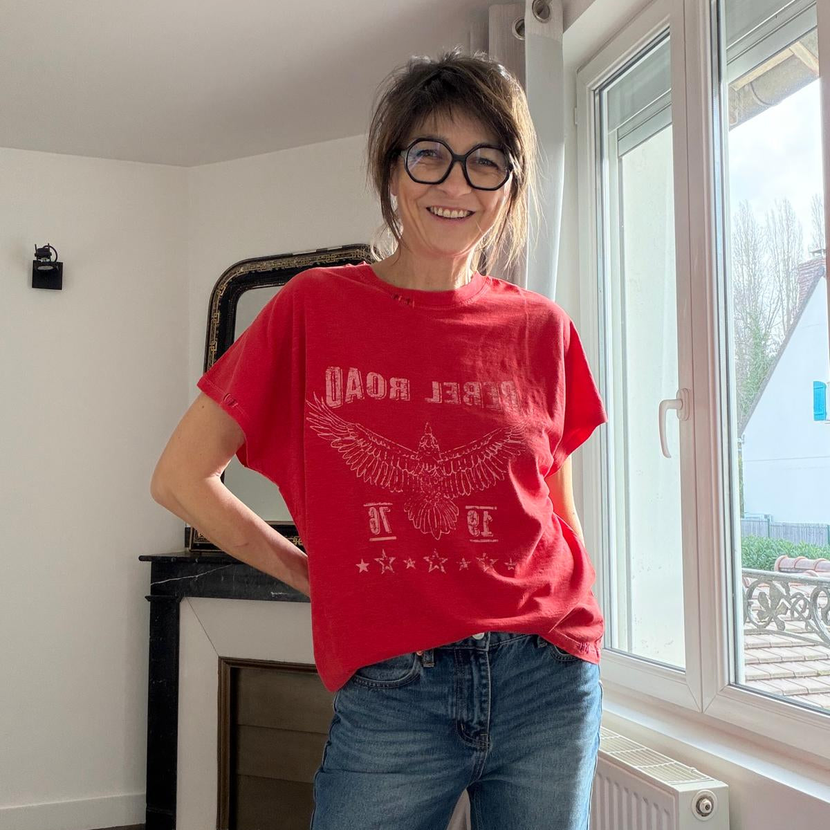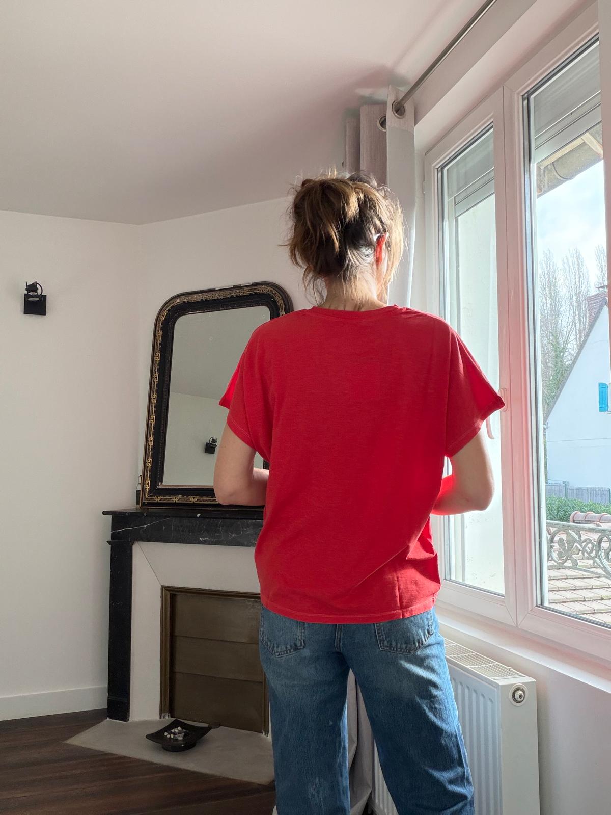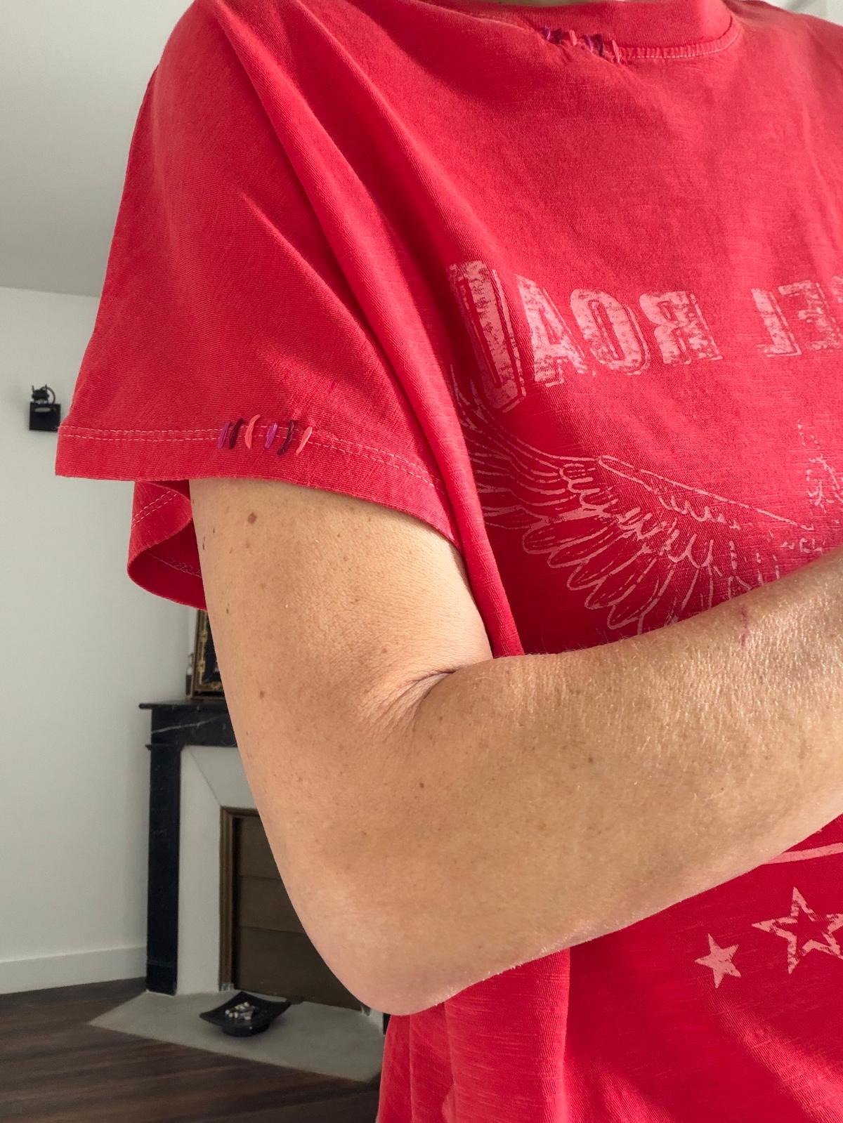 Emmanchures basses, on adore le petit détail de broderies sur le col et la manche, mais aussi le print washé vintage !