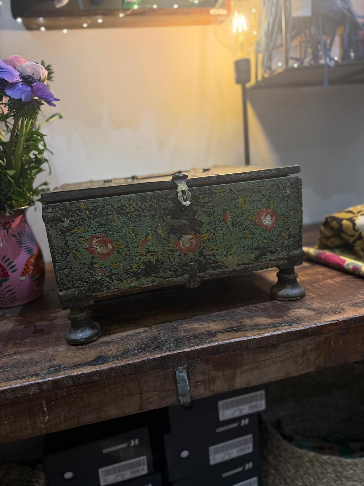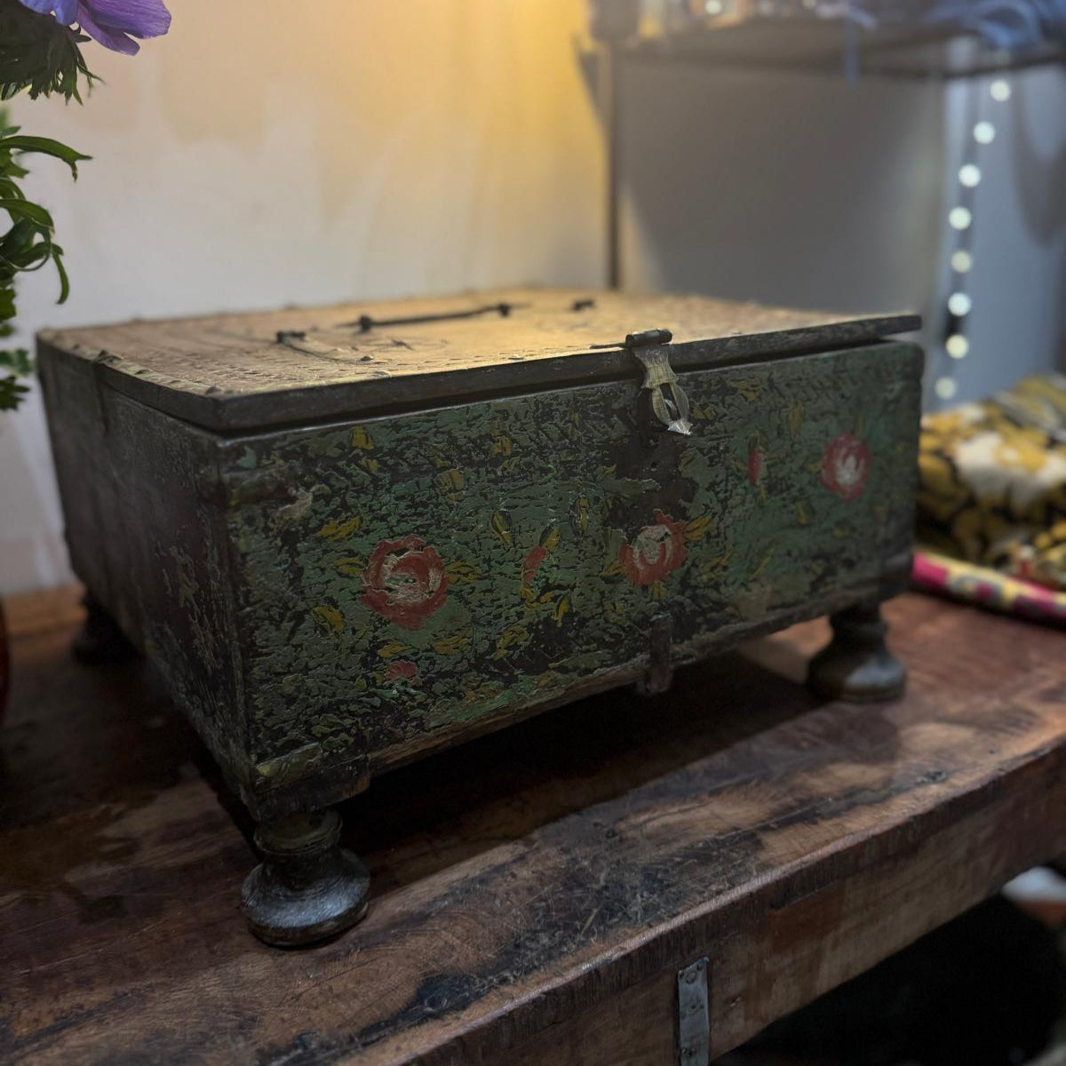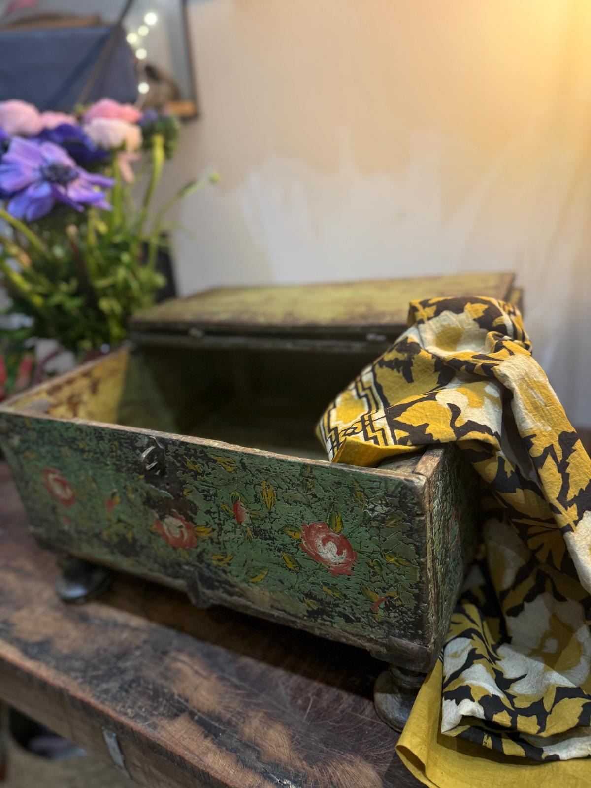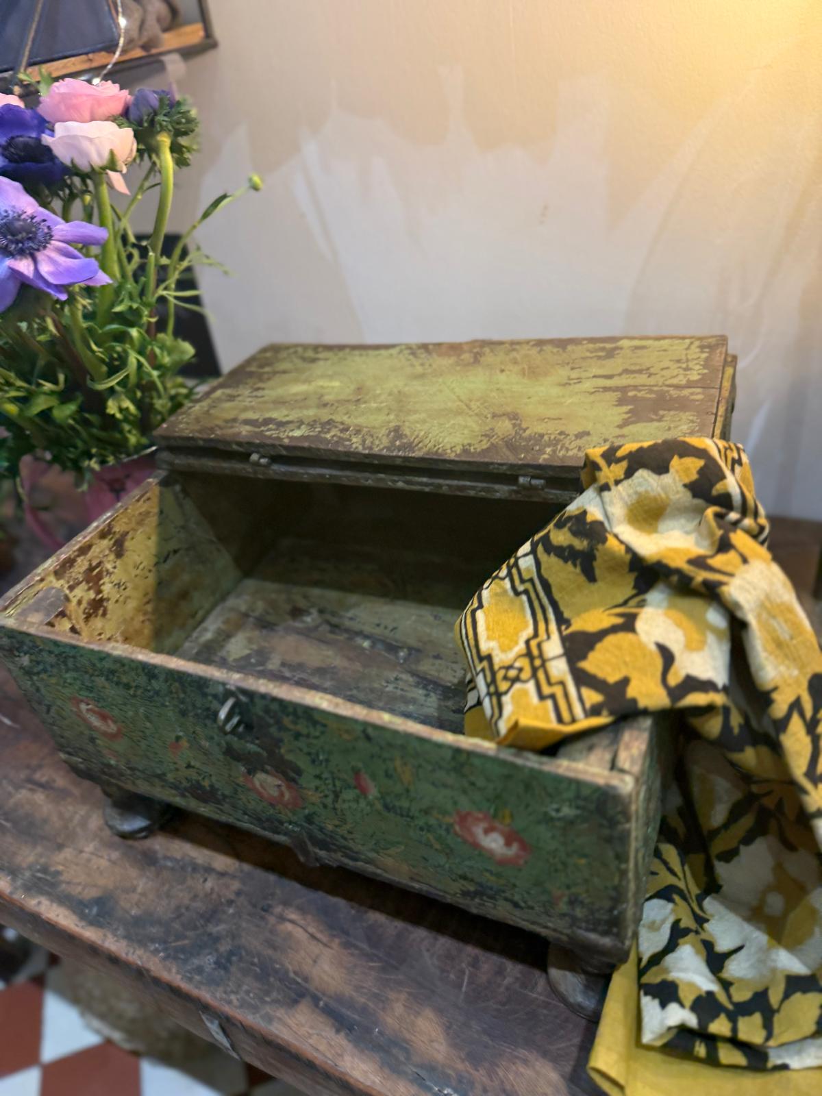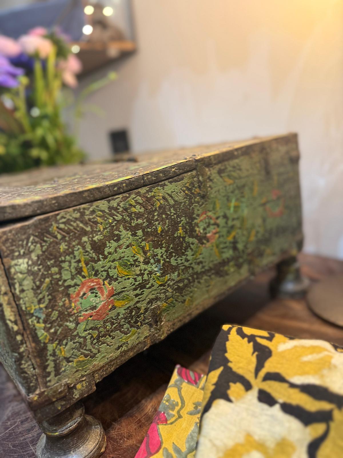 Magnifique coffre à bijoux ancien en bois issu d'une famille noble indienne.