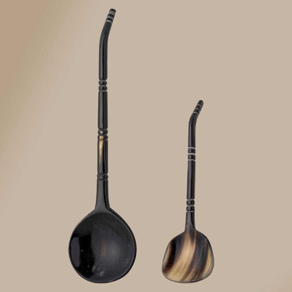 Les cuillères Avelin de Bloomingville constituent un ensemble de 2 cuillères de différentes tailles en corne - matériau naturel et magnifique. Elles peuvent être utilisées ensemble ou séparément pour servir toute une série de collations à table. Chaque set variera et sera unique en raison du matériau naturel.