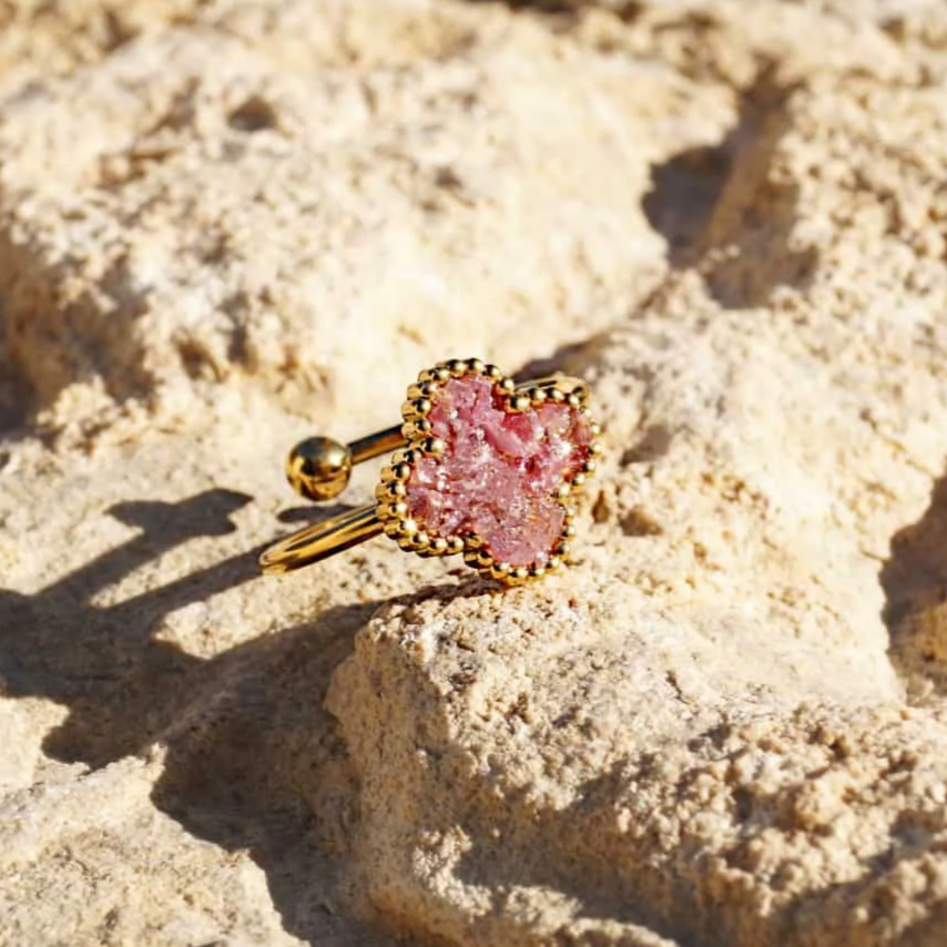 Bague Trèfle ajustable en acier inoxydable doré à l'or fin 18 carats.
