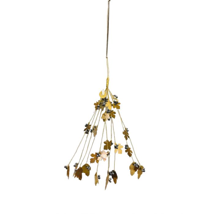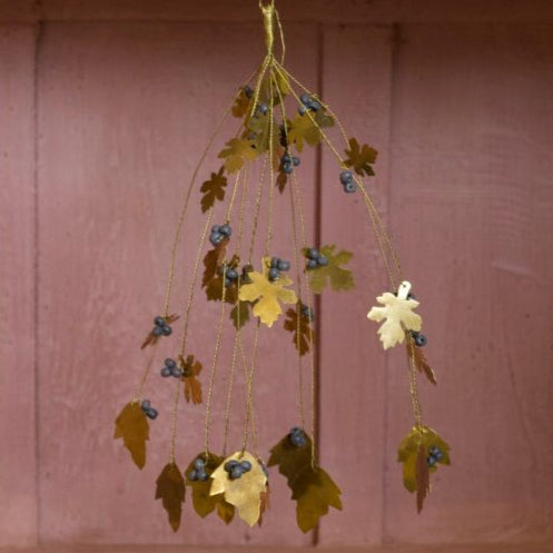 Suspension bouquet décoratif avec feuilles de chêne et baies noires.