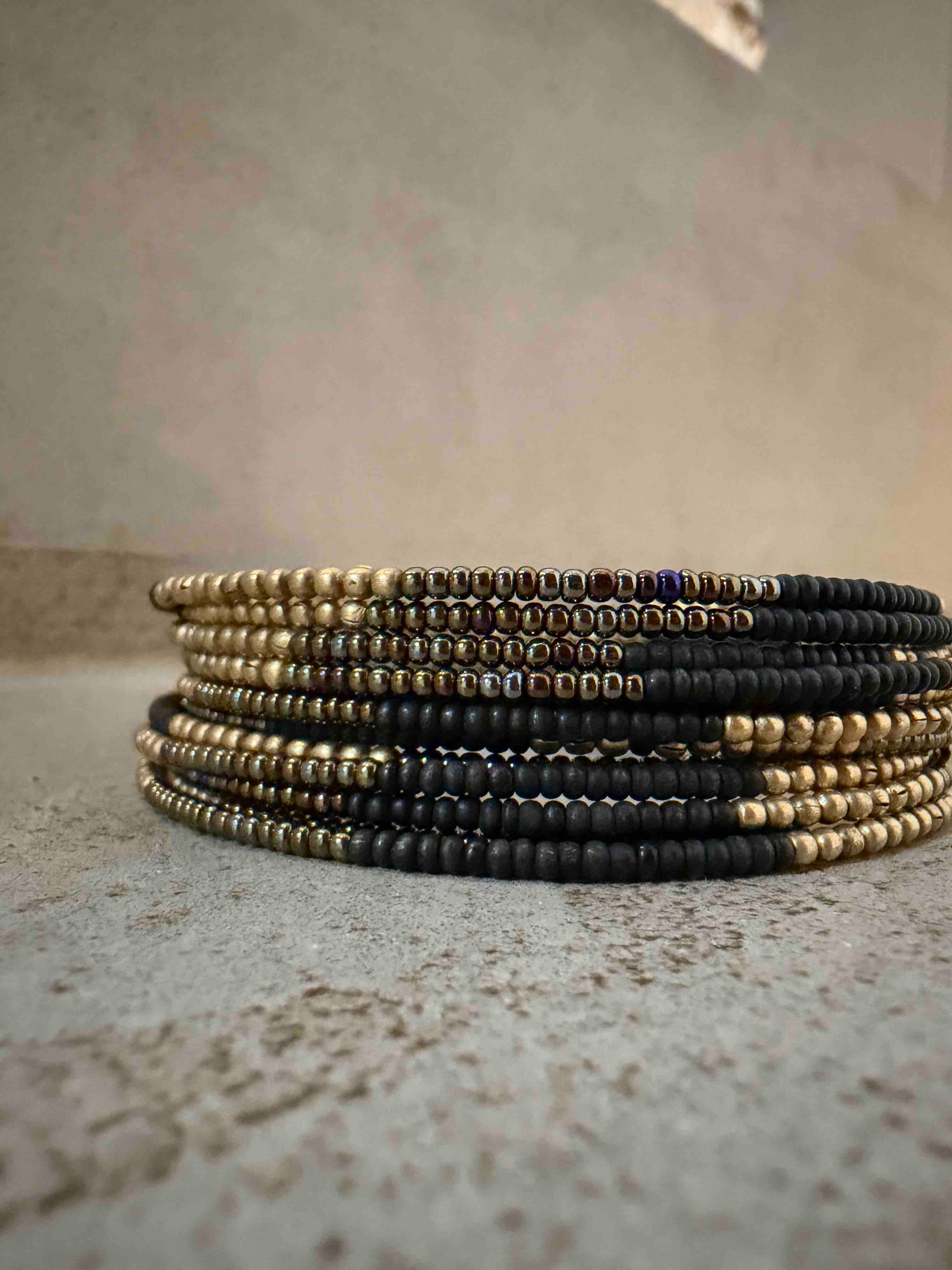 Il se détend et tel un ressort reprendra sa forme initiale. Les perles sont enfilées sur une âme en fer et s’adaptent à la plupart des poignets
