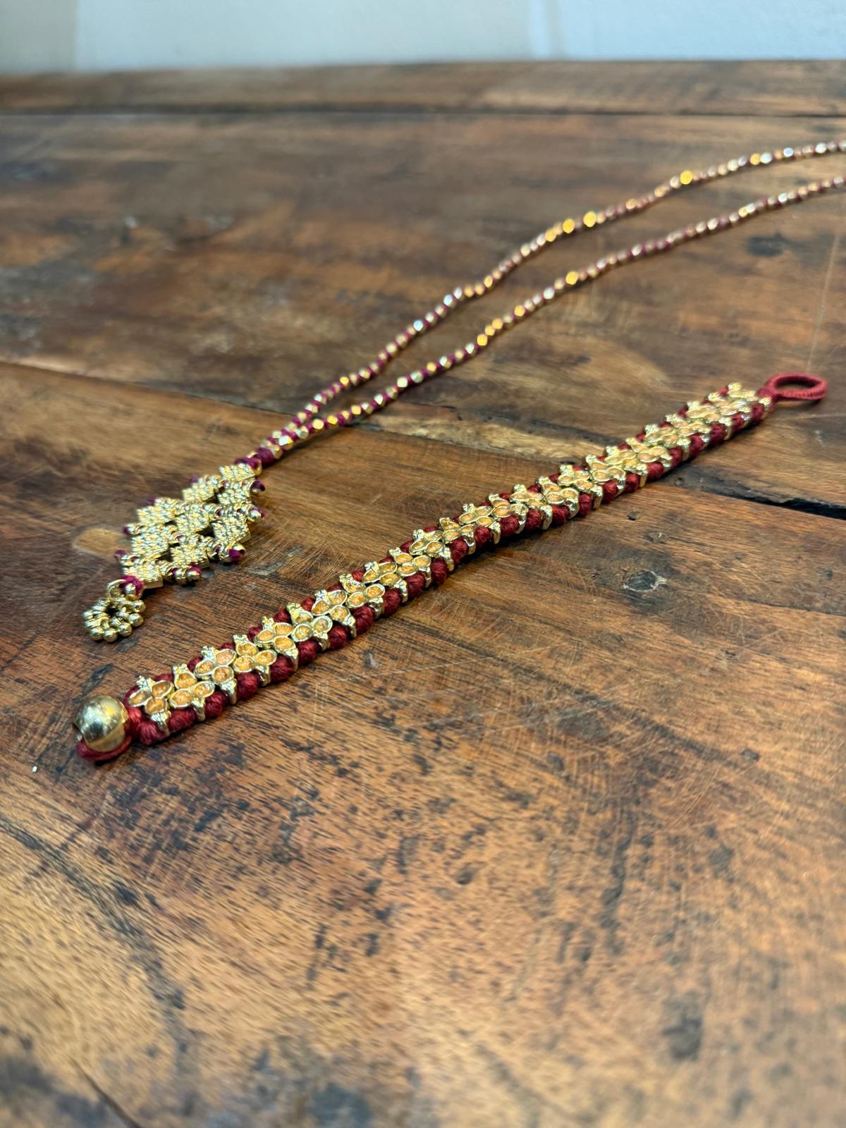 Longueur : 16 cm. Composition : Fil de coton, laiton, émail