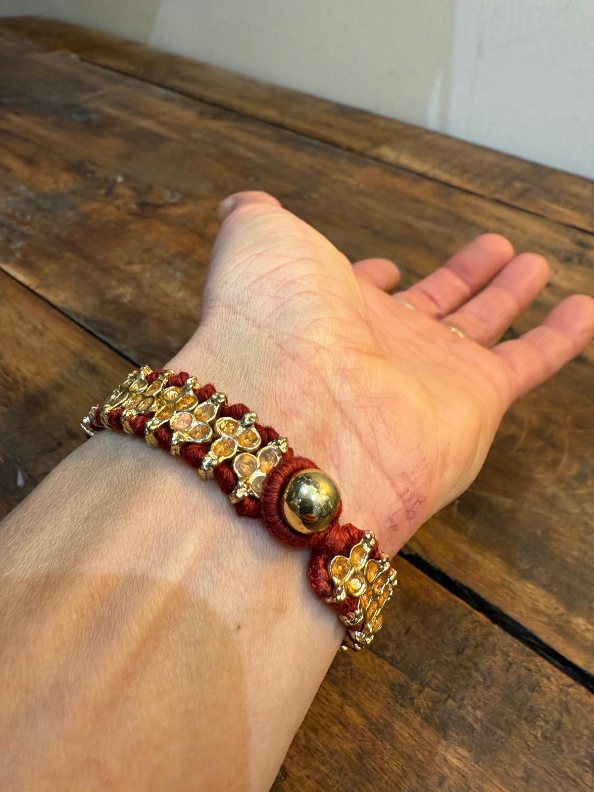 Très joli bracelet fabriqué à la main en fil de coton et laiton, ce bracelet est réversible et se porte également sur l'autre face.