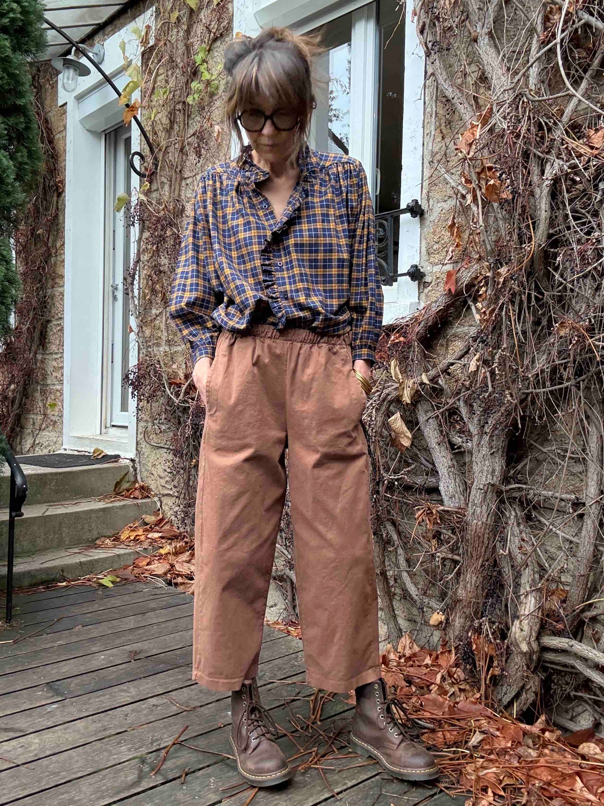 Mathilde c'est le modèle de chemise à carreaux romantique! Col victorien, coupe ample avec ses manches chauve-souris , emmanchures basses et fronces devant et dos. Coupe oversize. Coloris caramel et navy. Taille unique convient du 36 au 42