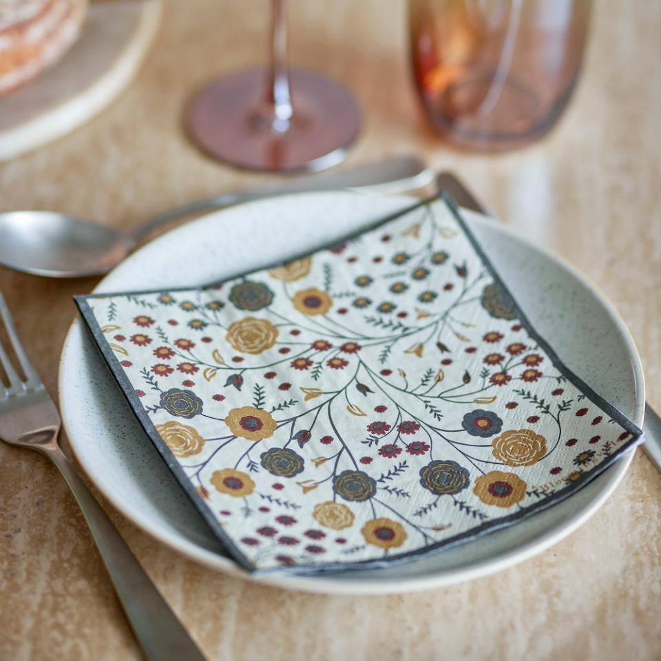 La Serviette Eydis de Bloomingville est fabriquée à partir de papier certifié FSC et se présente en paquet de 12. Le motif détaillé et les tons chauds confèrent une atmosphère chaleureuse à la table.