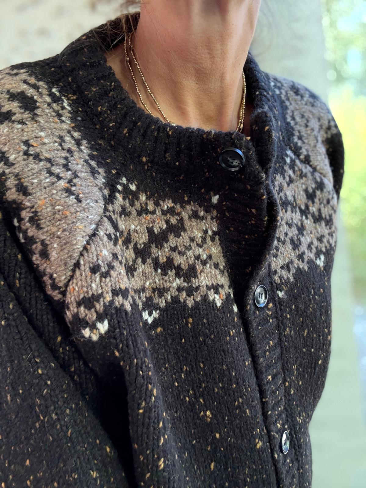 On vous embarque en Norvège avec ce magnifique gilet oversize 100% laine de Hod. Coupe droite, il a plein de détails dans les motifs tricotés. Evidemment très très chaud, le gilet Hanna de Hod vous suivra dans vos virées à la campagne et à la montage pour un look affirmé et tendance.