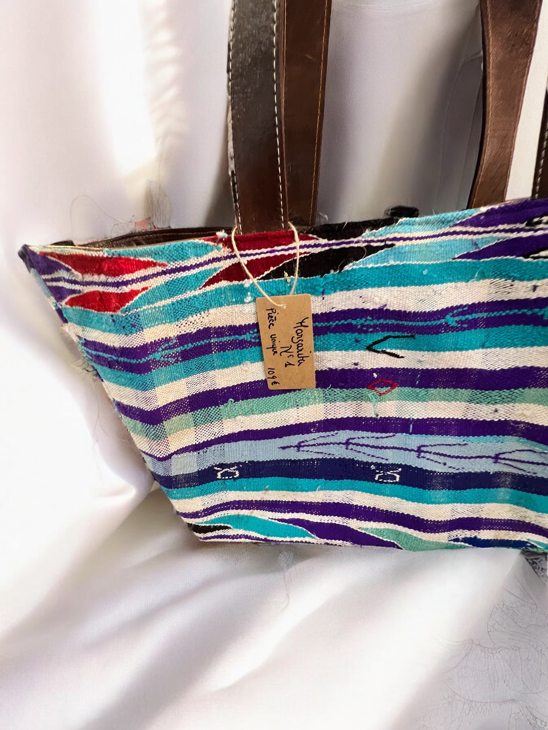 De part sa fabrication artisanale et du tissu ancien des imperfections sont visibles et tant mieux : il est unique.