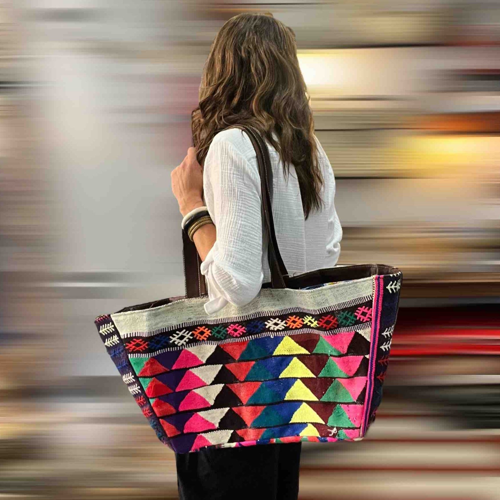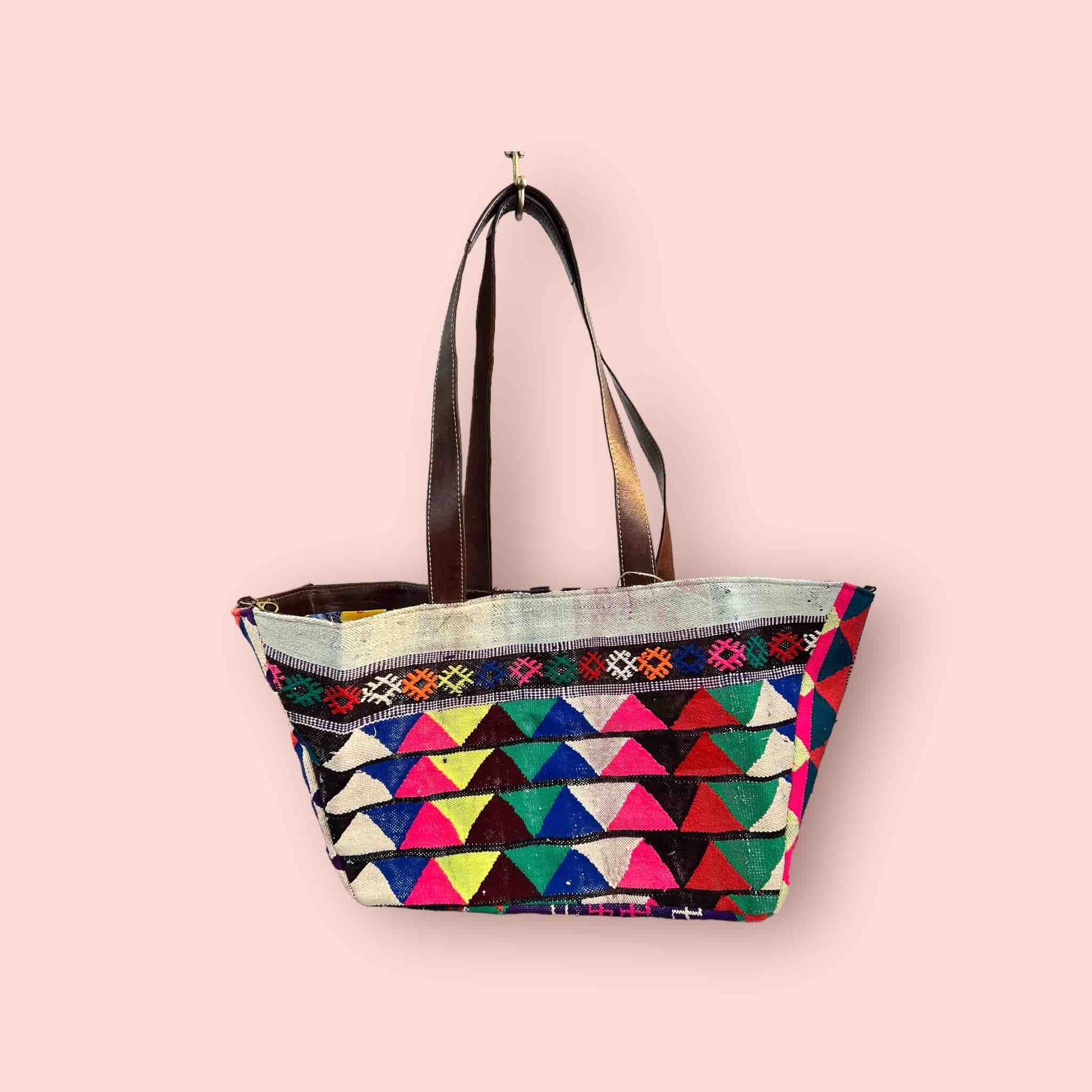 Le grand cabas Margarita est un modèle unique, dessiné par Thank You Margareth et réalisé artisanalement au Maroc à partir de couvertures berbères anciennes.
