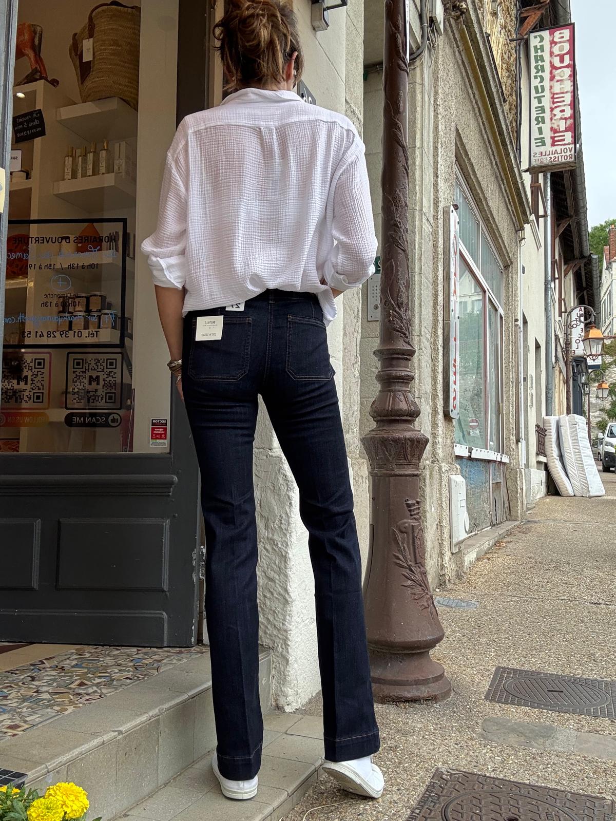 Le best de la marque Jane Blue c'est encore et toujours le jean Bastille! Dans sa version jean brut le Bastille vous accompagnera tout l'automne hiver ! Le Bastille c'est la garantie d'un confort absolu quelle que soit votre morphologie grâce à sa composition unique. Coupe ajustée sur la cuisse et léger flare dans le bas pour allonger la silhouette. Taille normale (juste en dessous du nombril) et surtout bien ajusté au dos pour galber parfaitement la silhouette. Indémodable, intemporel c'est LE jean qui vous accompagnera aussi bien avec des talons qu'avec des sandales ou des baskets.