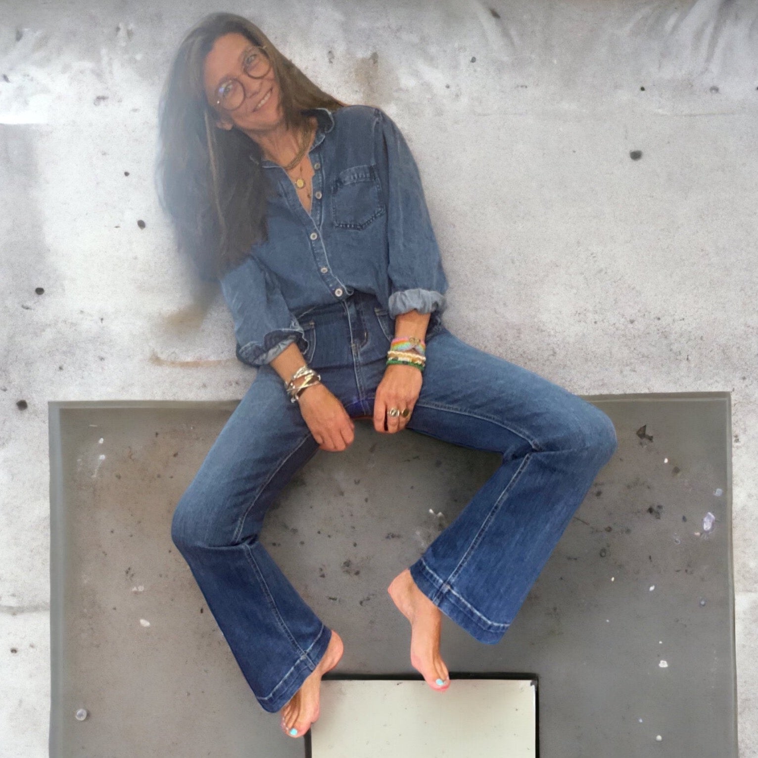 Le best of de Jane Blue : le Jean Bastille ! ici dans sa version oxford wash classique qu'on porte toute l'année. Jane Blue a imaginé ce jean en s'inspirant du vestiaire de Jane Birkin, et on l'adore aussi pour son confort très stretch.