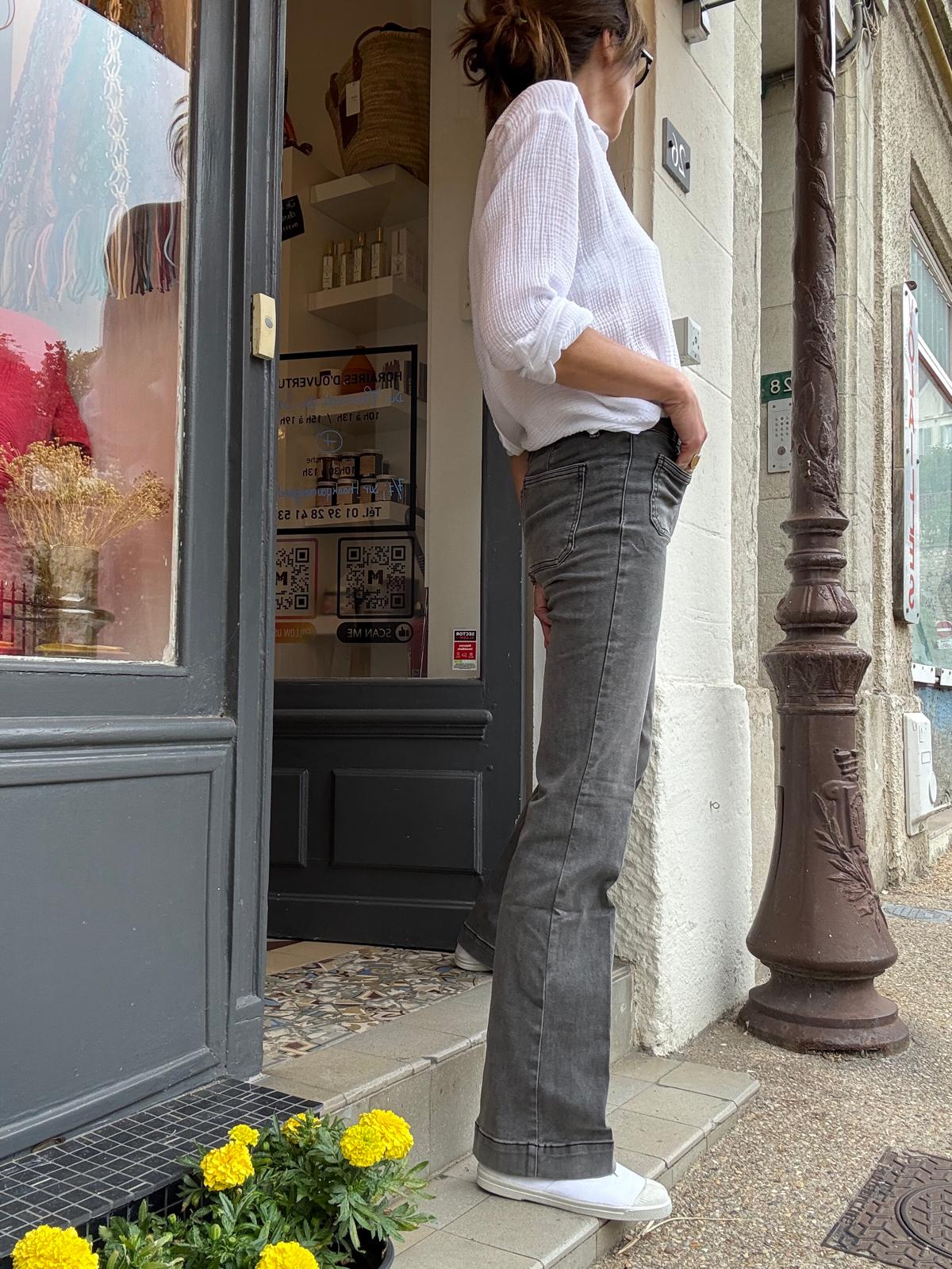 Le best de la marque Jane Blue c'est encore et toujours le jean Bastille! Et petite nouveauté avec ce coloris gris clair pile dans la tendance ! Le Bastille c'est la garantie d'un confort absolu quelle que soit votre morphologie grâce à sa composition unique. Coupe ajustée sur la cuisse et léger flare dans le bas pour allonger la silhouette. Taille normale (juste en dessous du nombril) et surtout bien ajusté au dos pour galber parfaitement la silhouette. Indémodable, intemporel c'est LE jean qui vous accompagnera aussi bien avec des talons qu'avec des sandales ou des baskets.