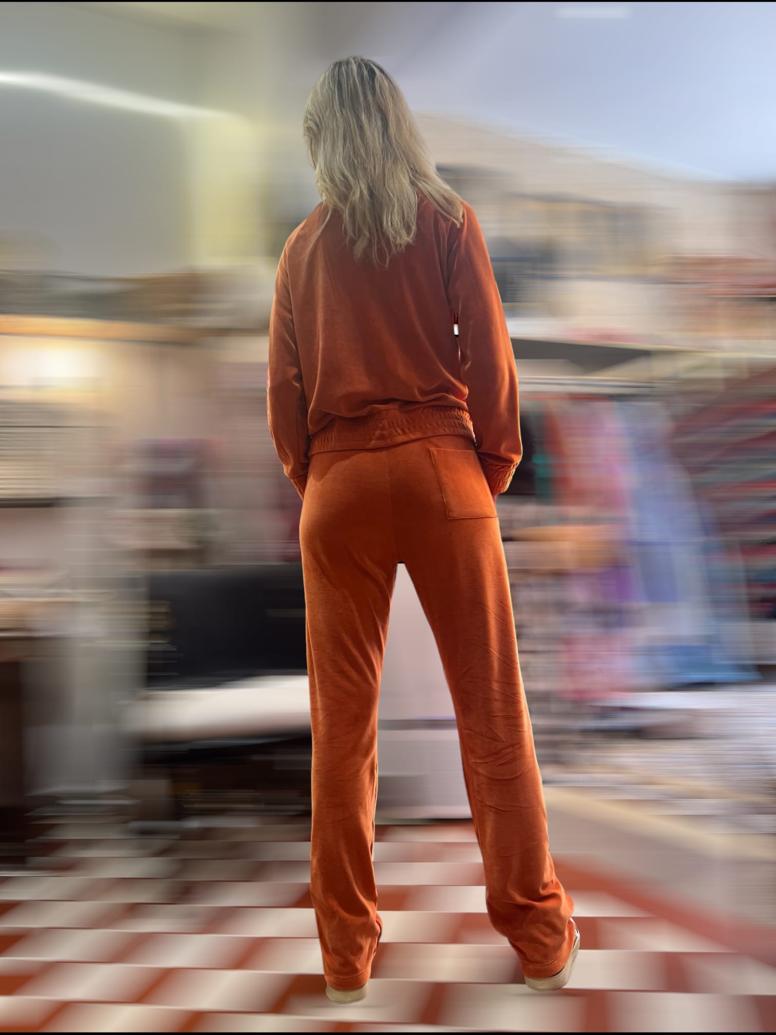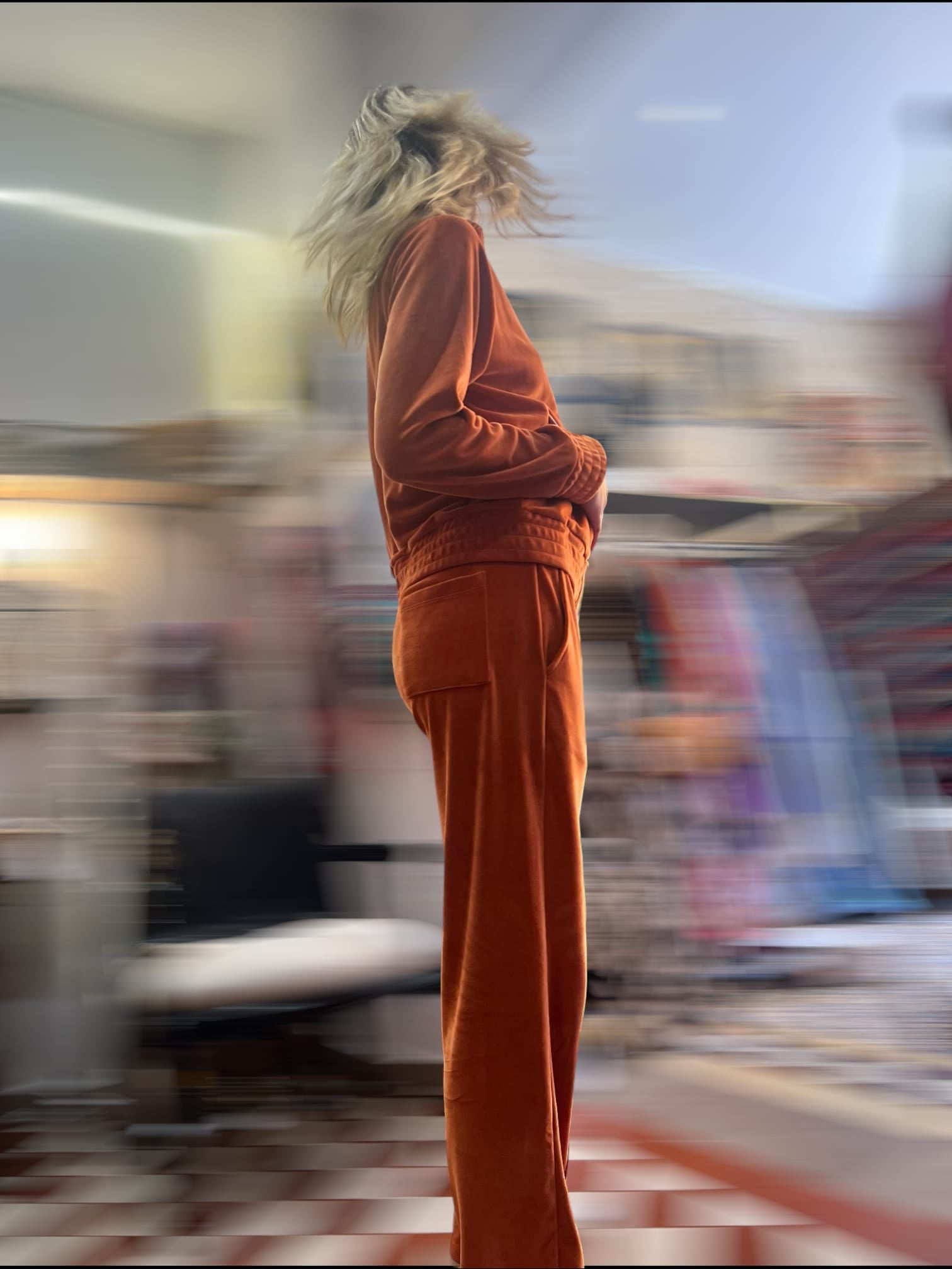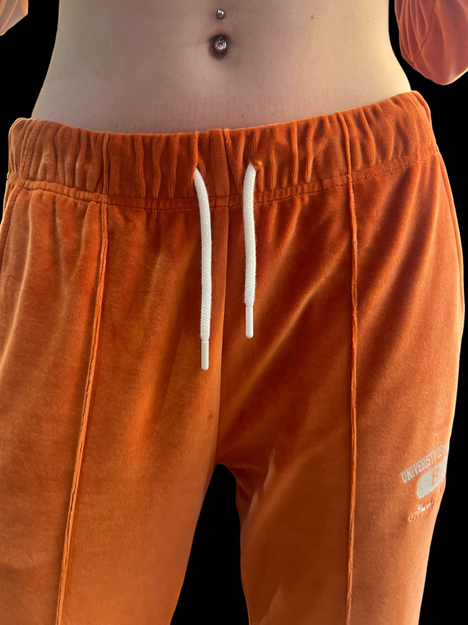 Magnifique jogging en velours Hod Paris qu’on a sélectionné dans sa version la plus incroyable… couleur tangerine.