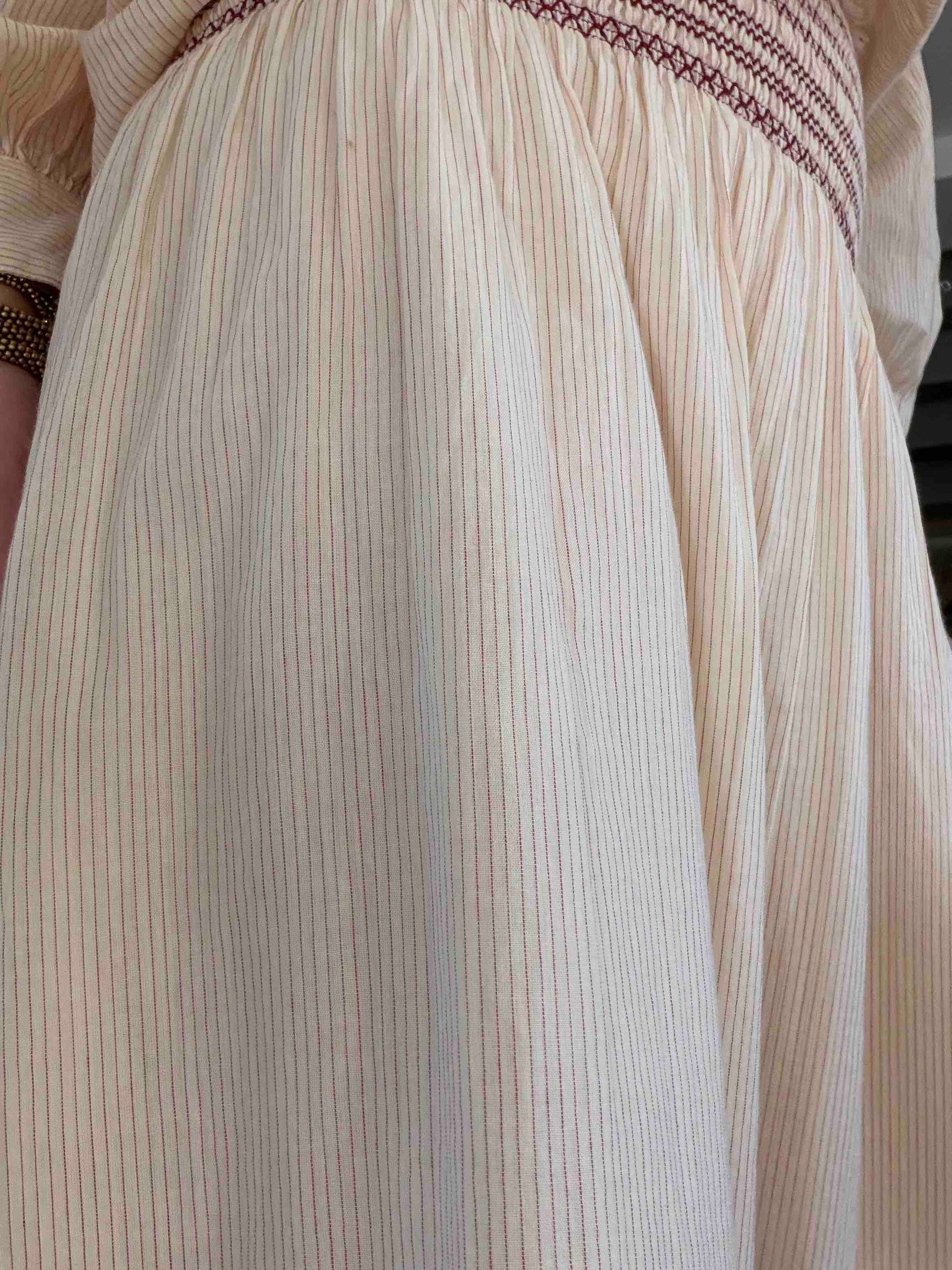 Non seulement la jupe Aurore est ultra confortable, légère comme une plume, mais elle est aussi multi-fonction : avec son "smokk" à la taille : sa longueur permet de la porter en mode jupe longue ou mi-longue ou encore en robe bustier. La jupe est entièrement doublée, finition bas frangé.