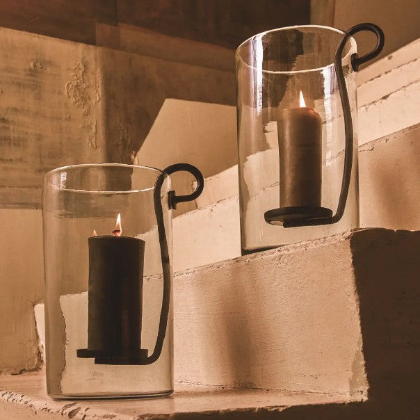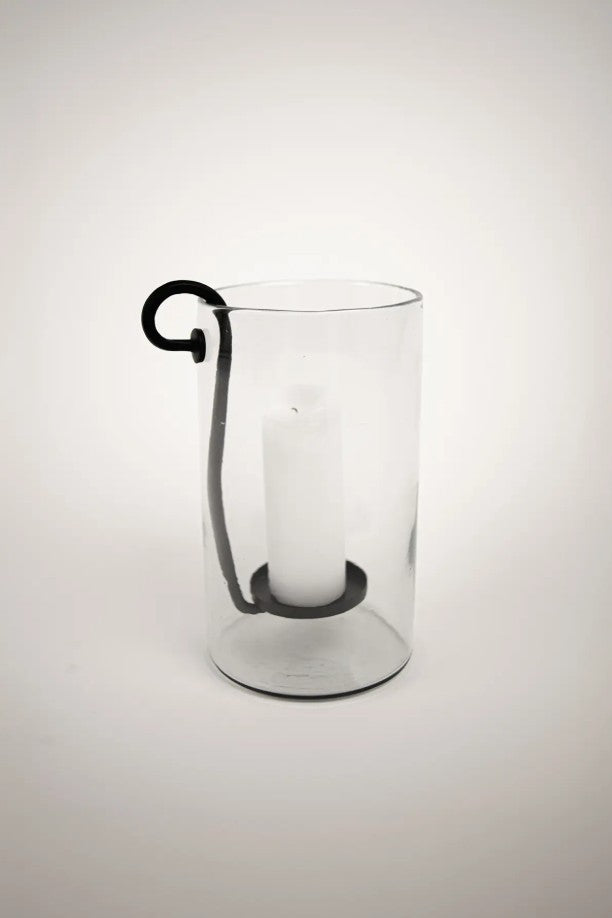 Lanterne en verre transparent avec support pour bougie amovible. Utilisez-la comme une lanterne ou retirez le support et laissez-la devenir un vase élégant.