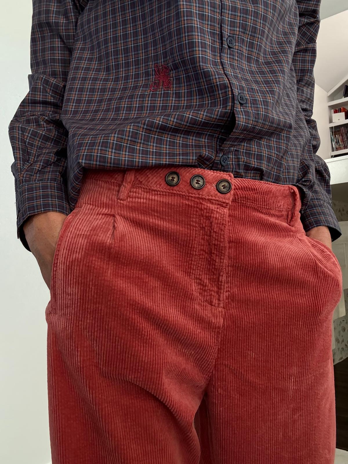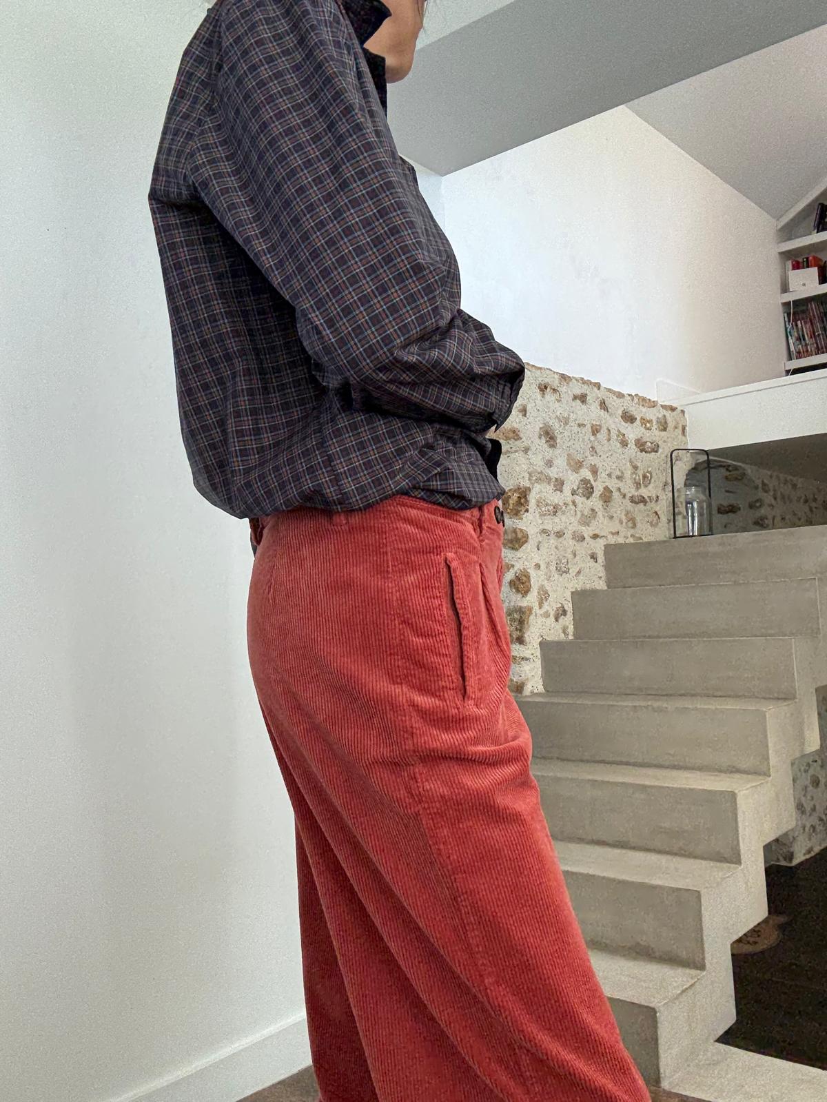 Une coupe ultra tendance pour ce pantalon velours Hod Paris. Chevilles resserrées et taille normale, on a craqué pour sa couleur brique et son confort tout doux. On le porte évidemment à la cool le week-end mais aussi au bureau en l'assortissant par exemple avec la chemise Cléo Navy.