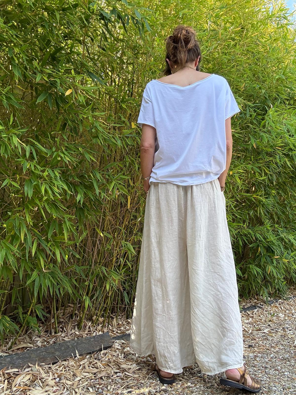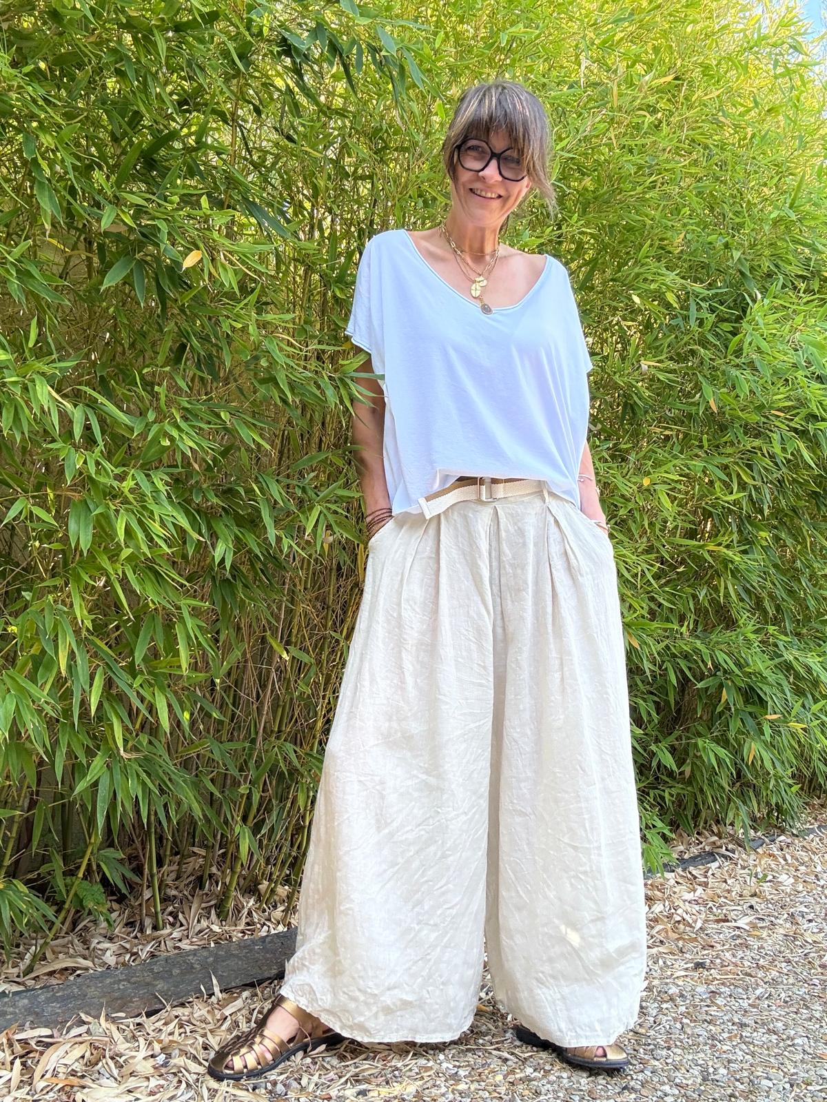 Craquez pour notre pantalon en lin 100% naturel, à la fois élégant, confortable et résolument estival. Sa coupe jambes larges ultra flatteuse convient à toutes les morphologies et allonge la silhouette avec style. Léger et respirant, il est parfait pour vous accompagner tout l’été, que ce soit au bureau, en terrasse ou en vacances au soleil.
