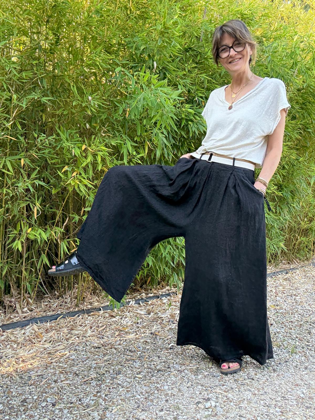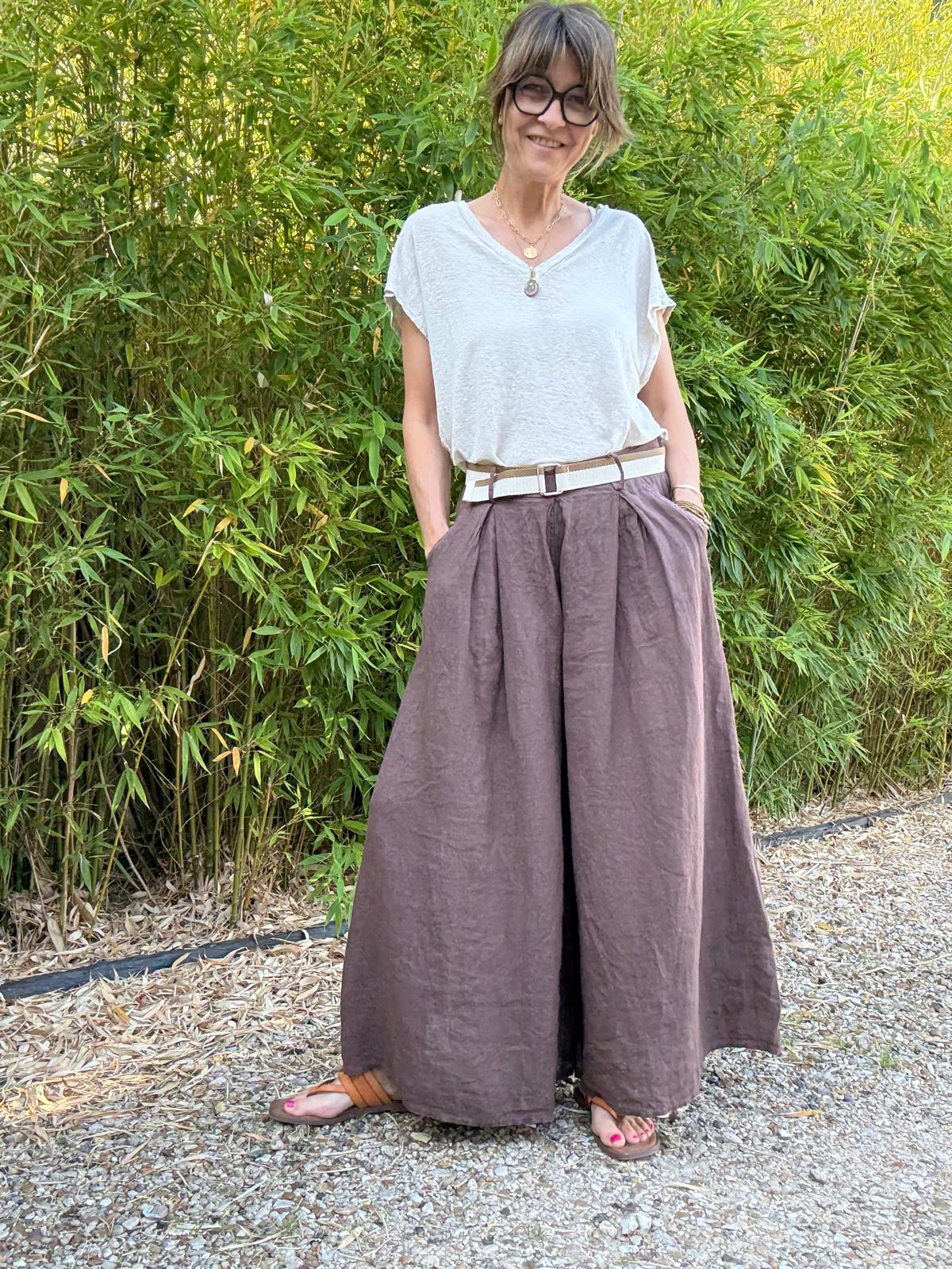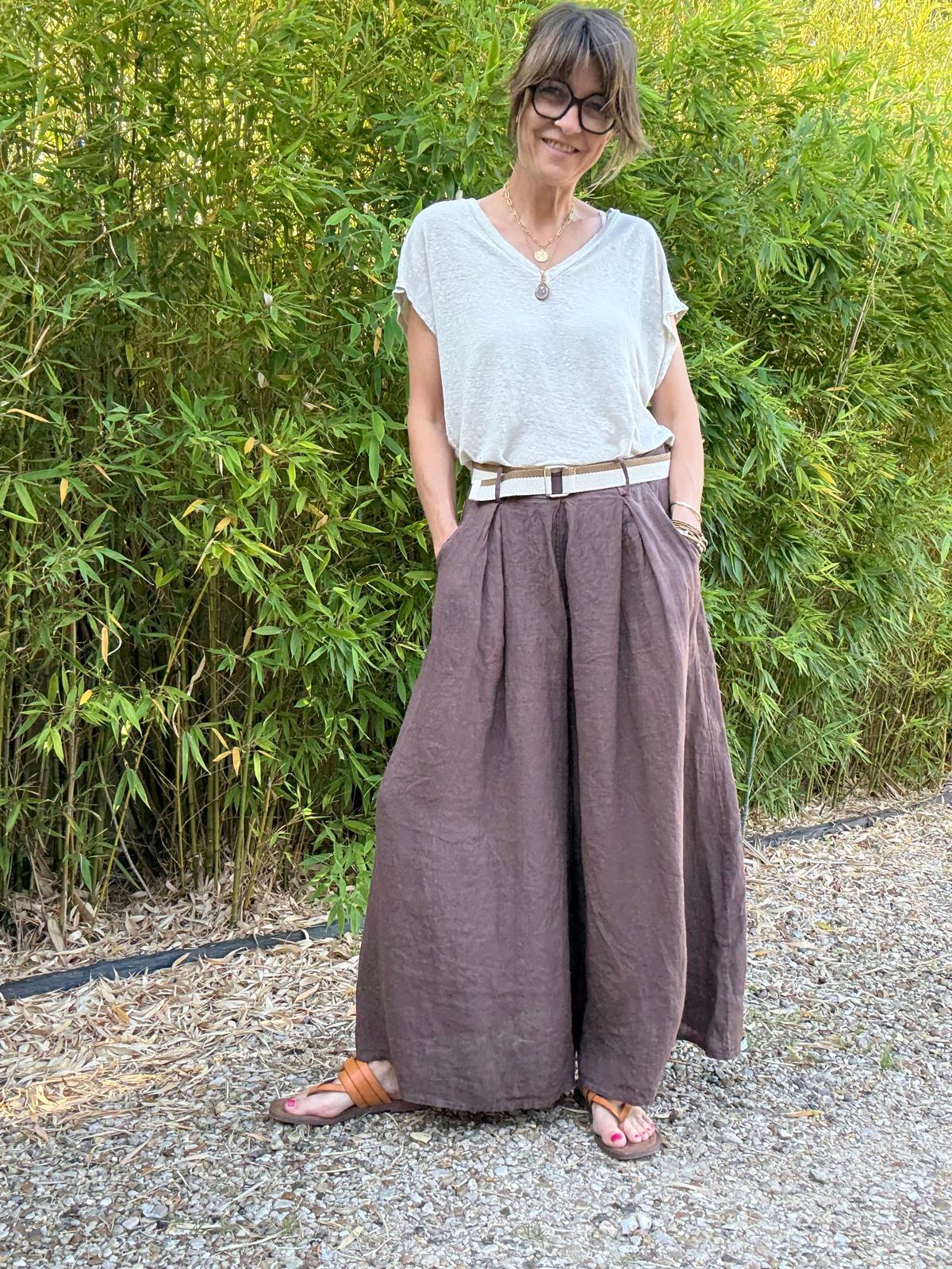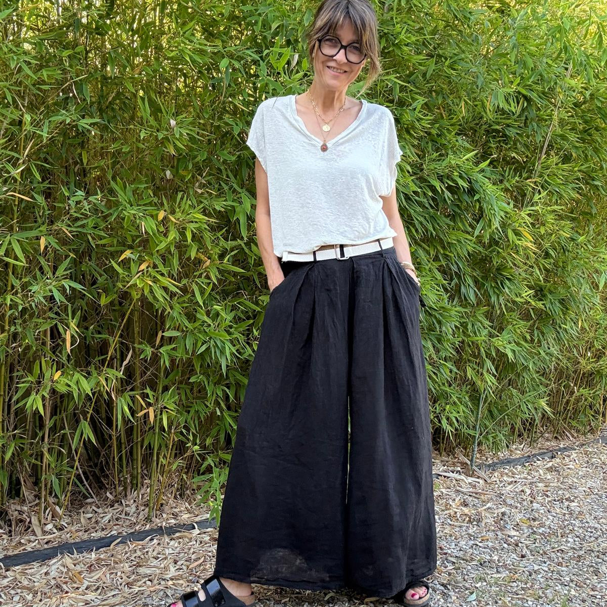 Pantalon Dina 100% lin - noir, kaki, chocolat, beige, bordeaux ou marine