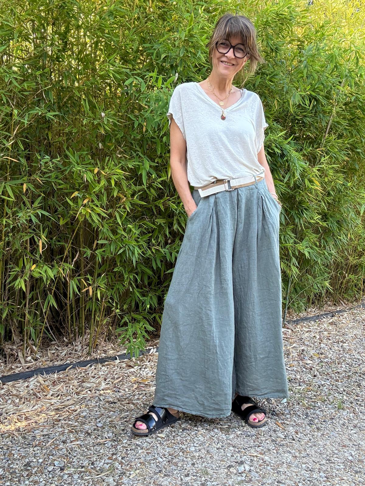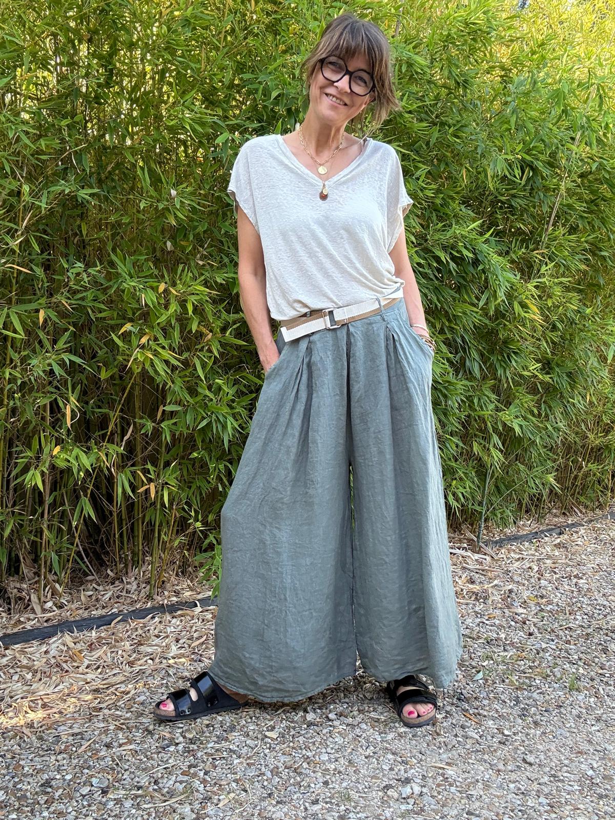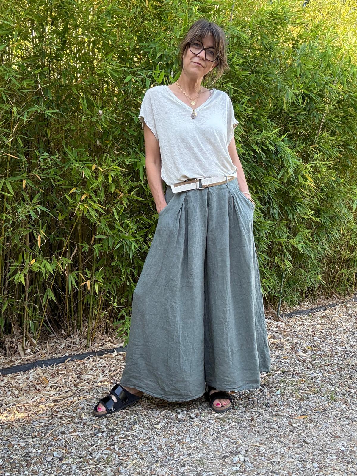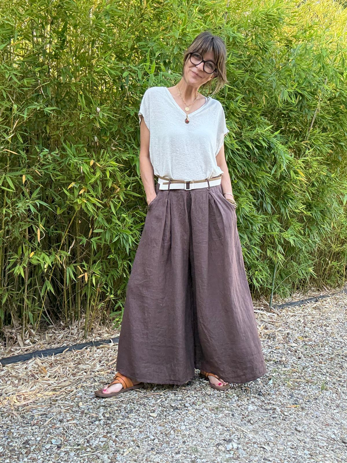Pantalon Dina 100% lin - noir, kaki, chocolat, beige, bordeaux ou marine