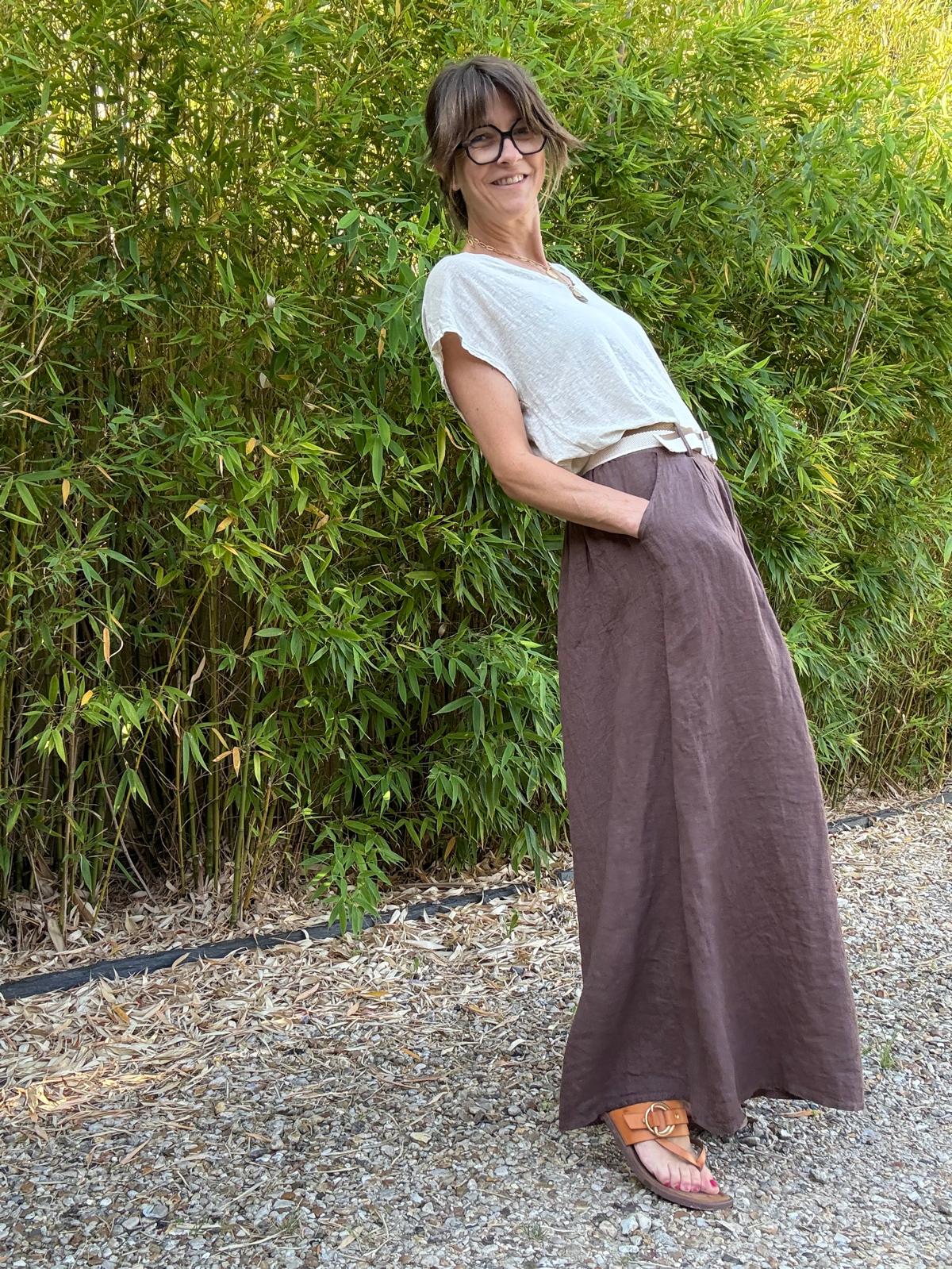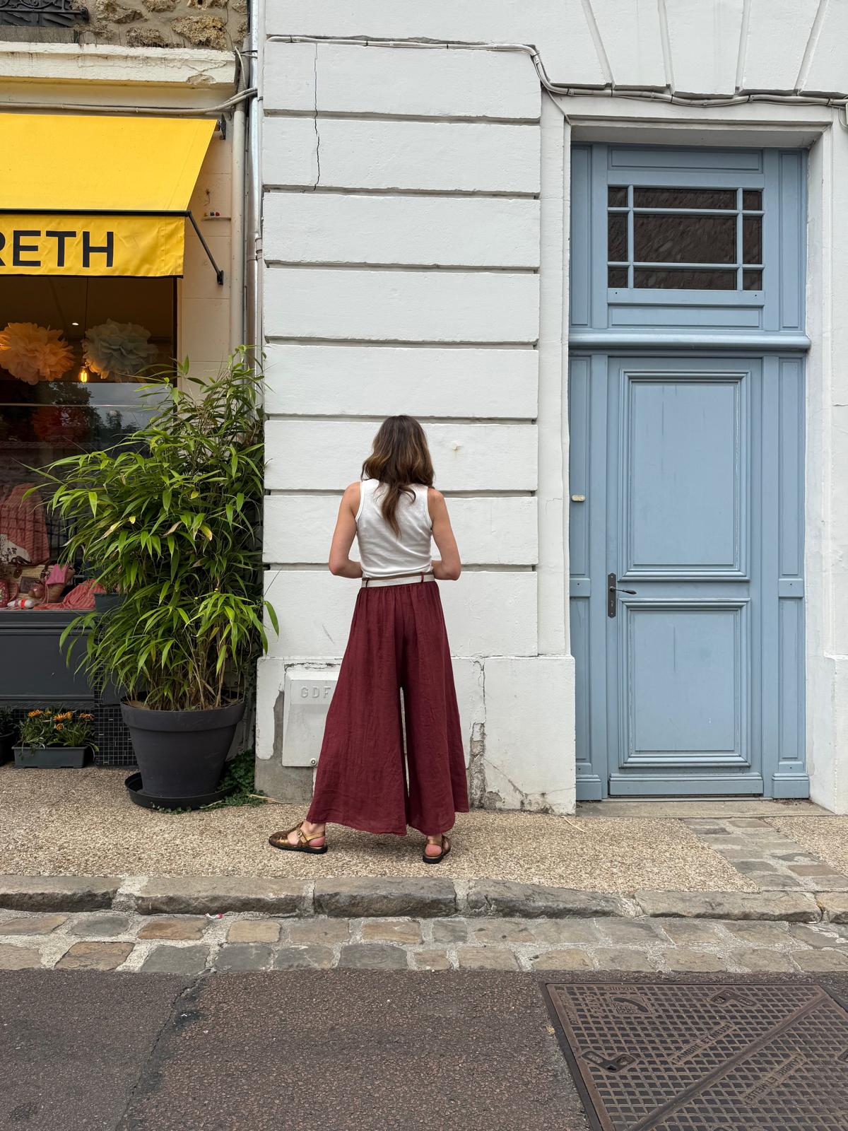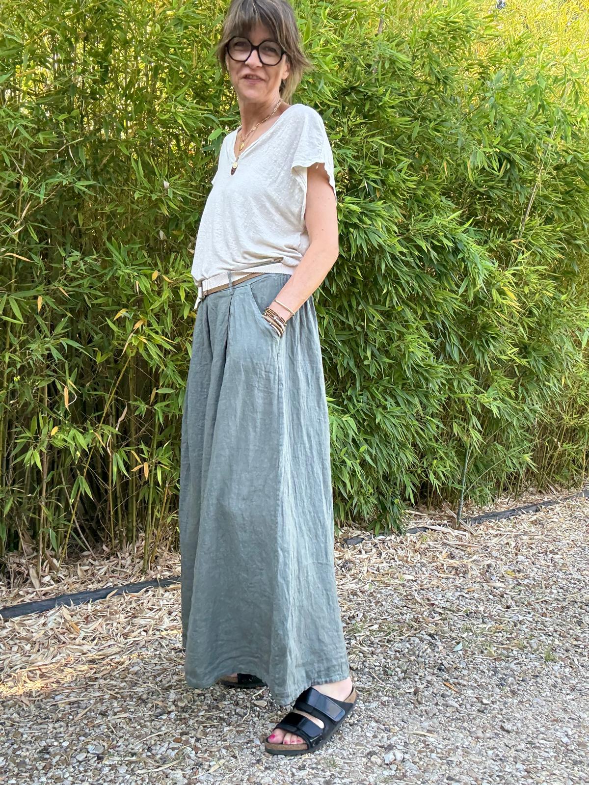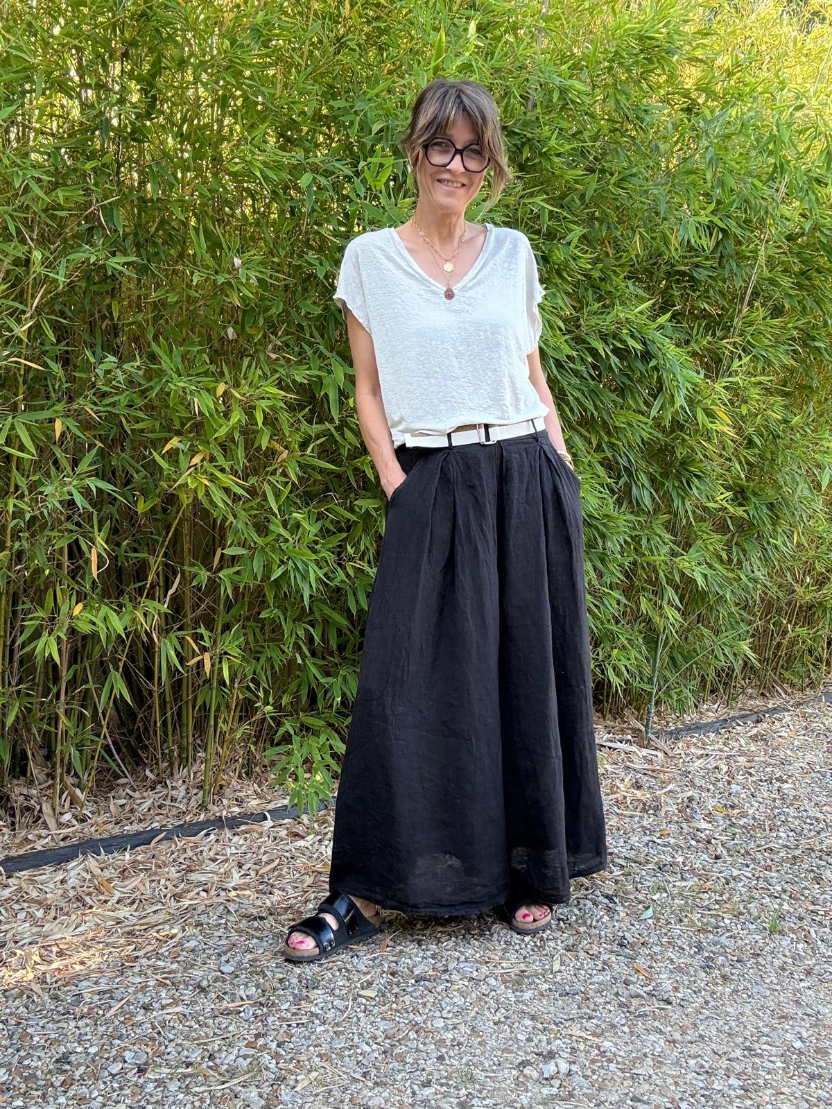 Pantalon Dina 100% lin - noir, kaki, chocolat, beige, bordeaux ou marine