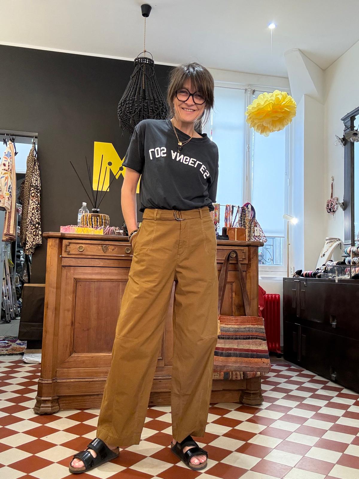 EDGAR est un pantalon à la coupe cargo. Taille haute et jambe droite. Il possède une ceinture. Coloris Bronze