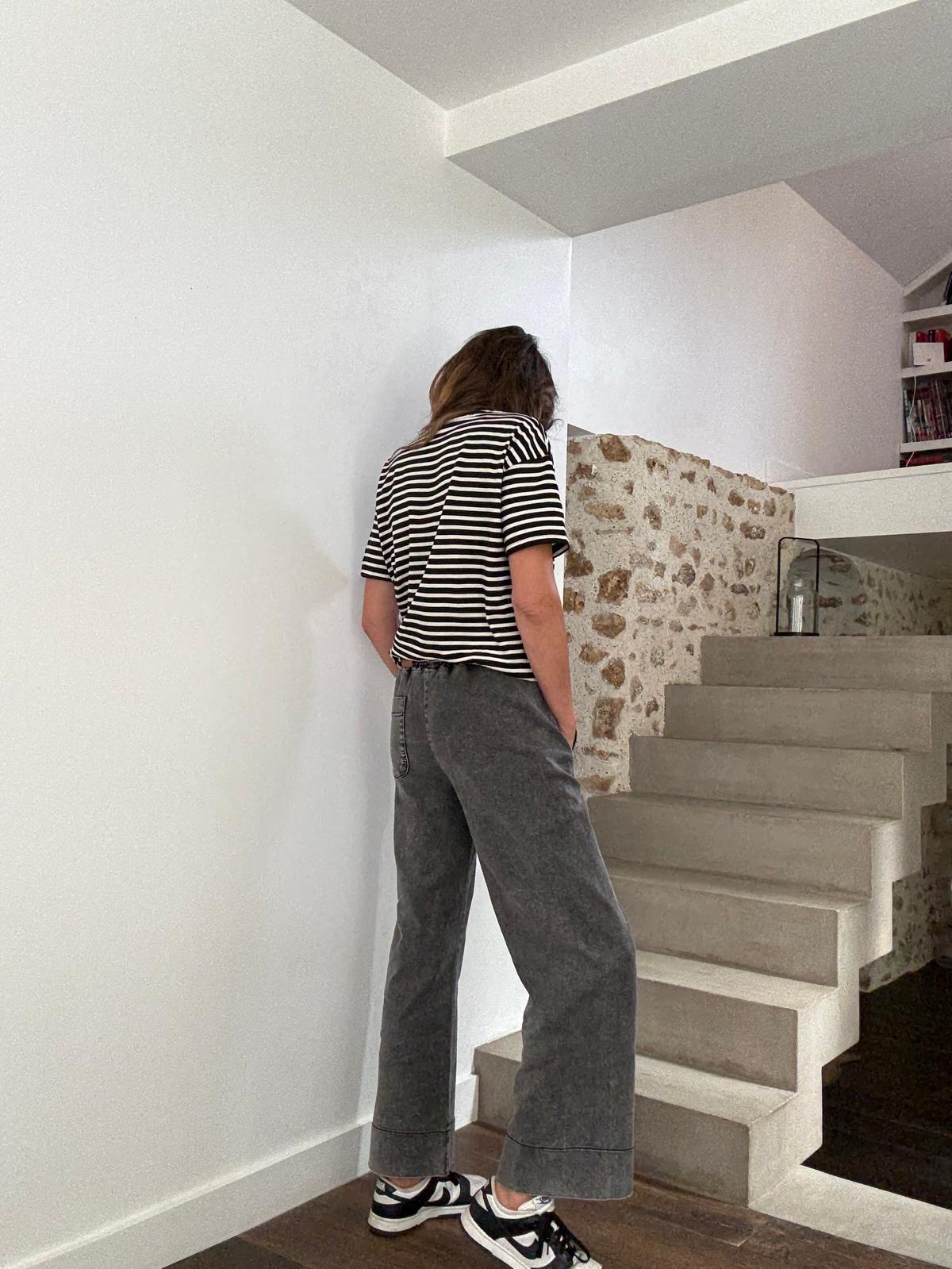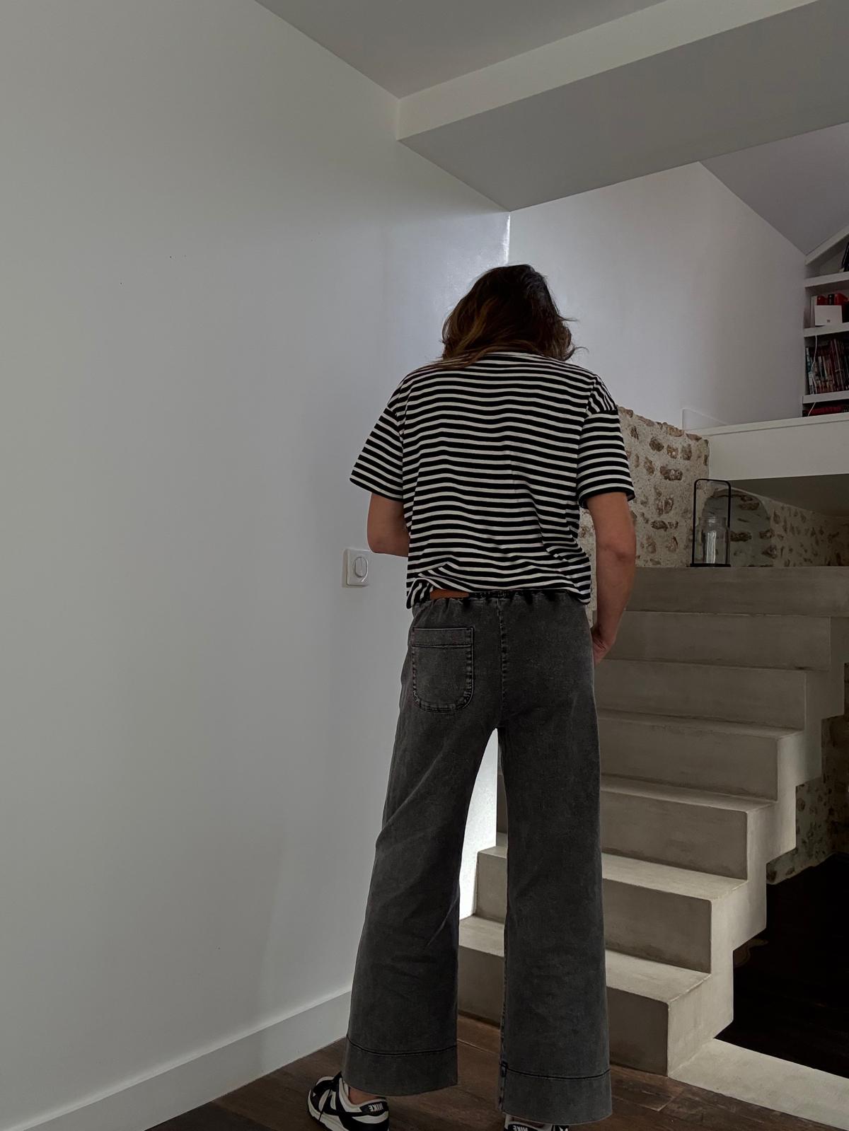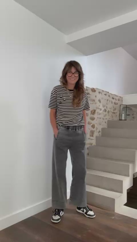 Le pantalon Jim, petit cousin du Jimmy, modèle iconique de la marque HOD PARIS ici dans sa version jean gris, Incontournable du vestiaire Thank You Margareth on le porte façon dégaine avec des boots ou des baskets. Longueur 7/8è. Le pantalon Jim Hod Paris est entièrement élastiqué à la taille, ce qui le rend très confortable. Jambe droite et large. 2 poches plaquées "à l'italienne", 1 poche plaquée à l'arrière, grand revers en bas de jambe.