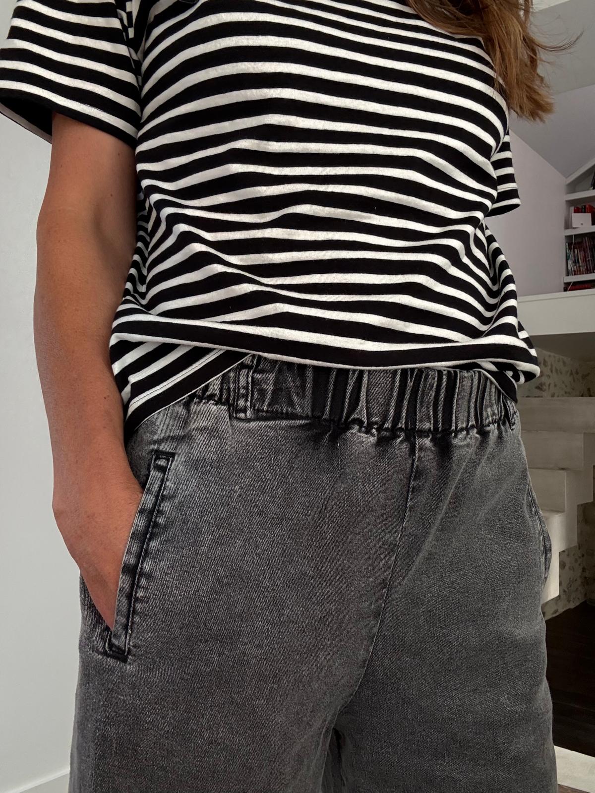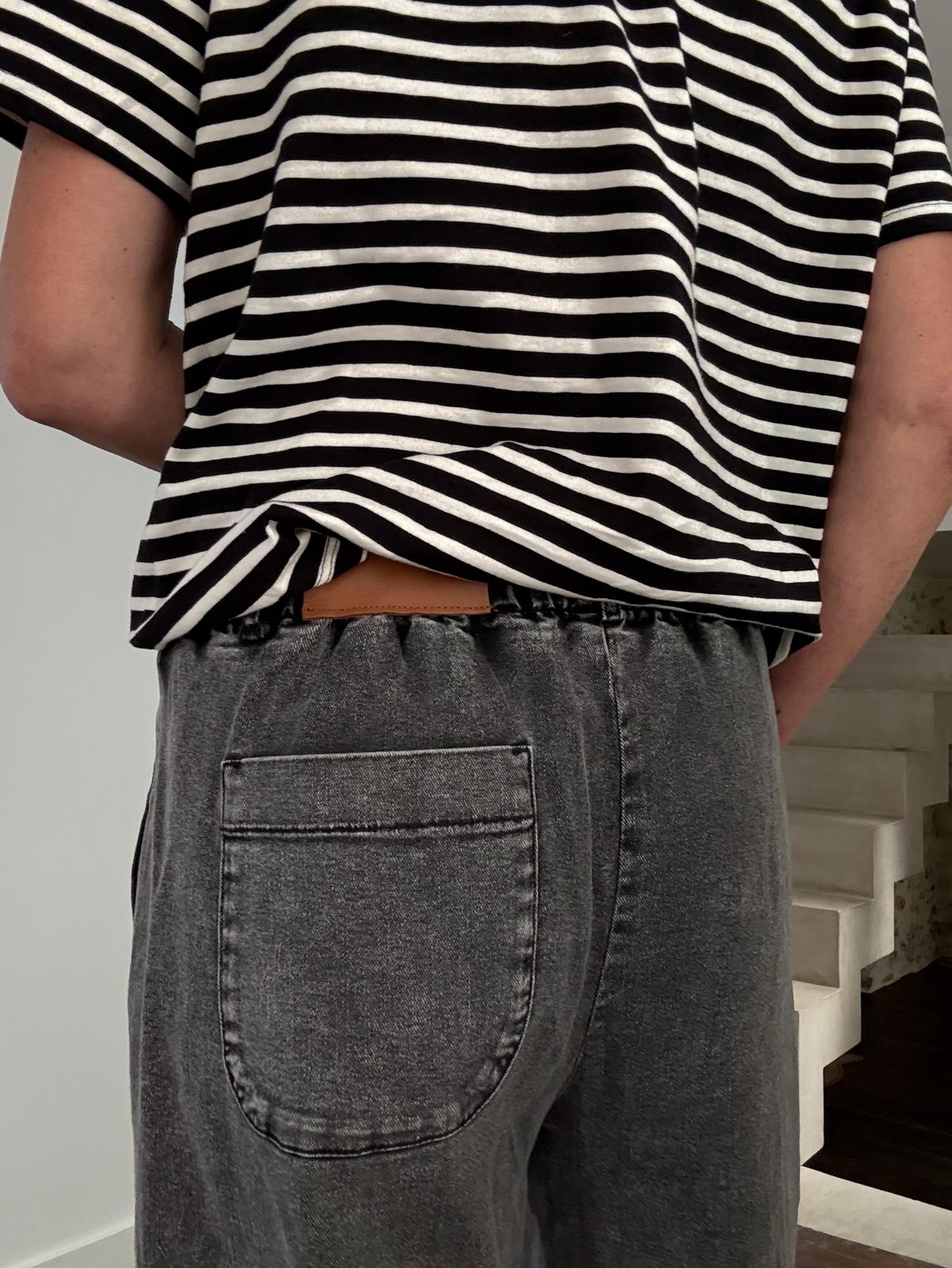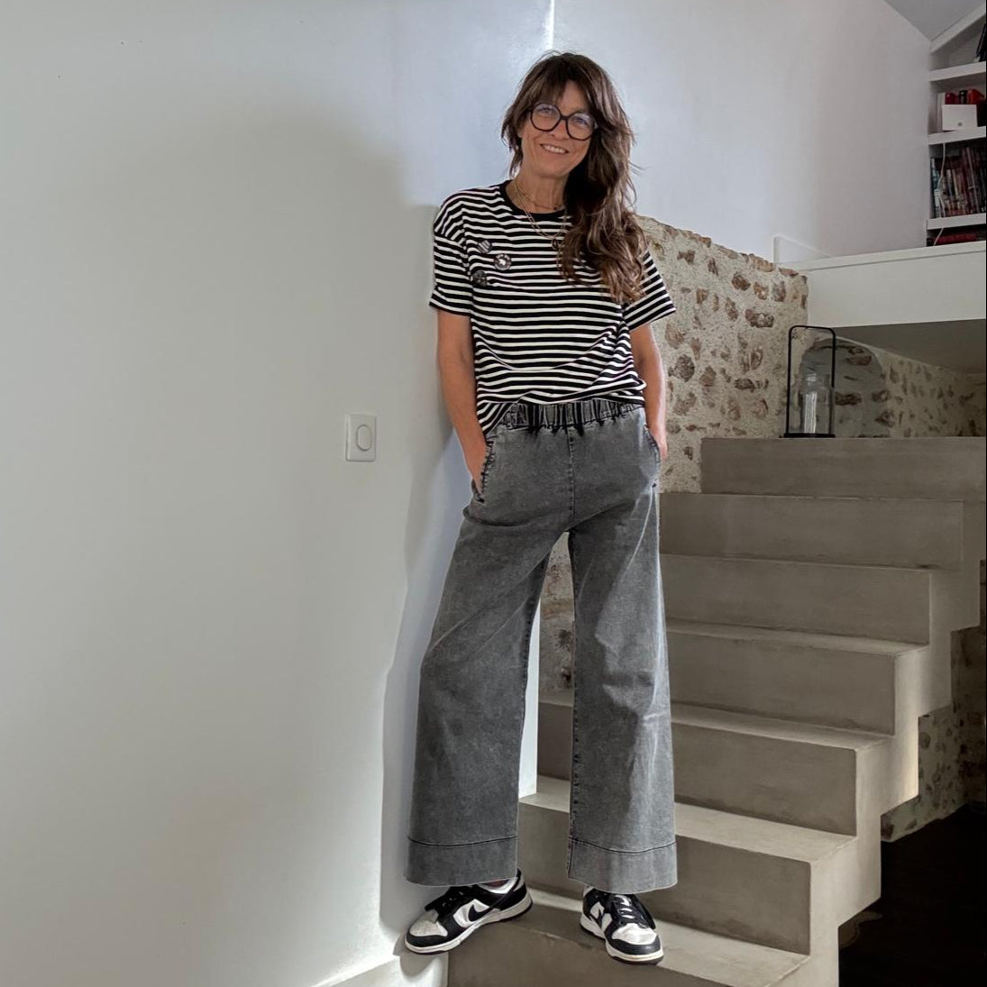 Le pantalon Jim, petit cousin du Jimmy, modèle iconique de la marque HOD PARIS ici dans sa version jean gris, Incontournable du vestiaire Thank You Margareth on le porte façon dégaine avec des boots ou des baskets. Longueur 7/8è. Le pantalon Jim Hod Paris est entièrement élastiqué à la taille, ce qui le rend très confortable. Jambe droite et large. 2 poches plaquées "à l'italienne", 1 poche plaquée à l'arrière, grand revers en bas de jambe.