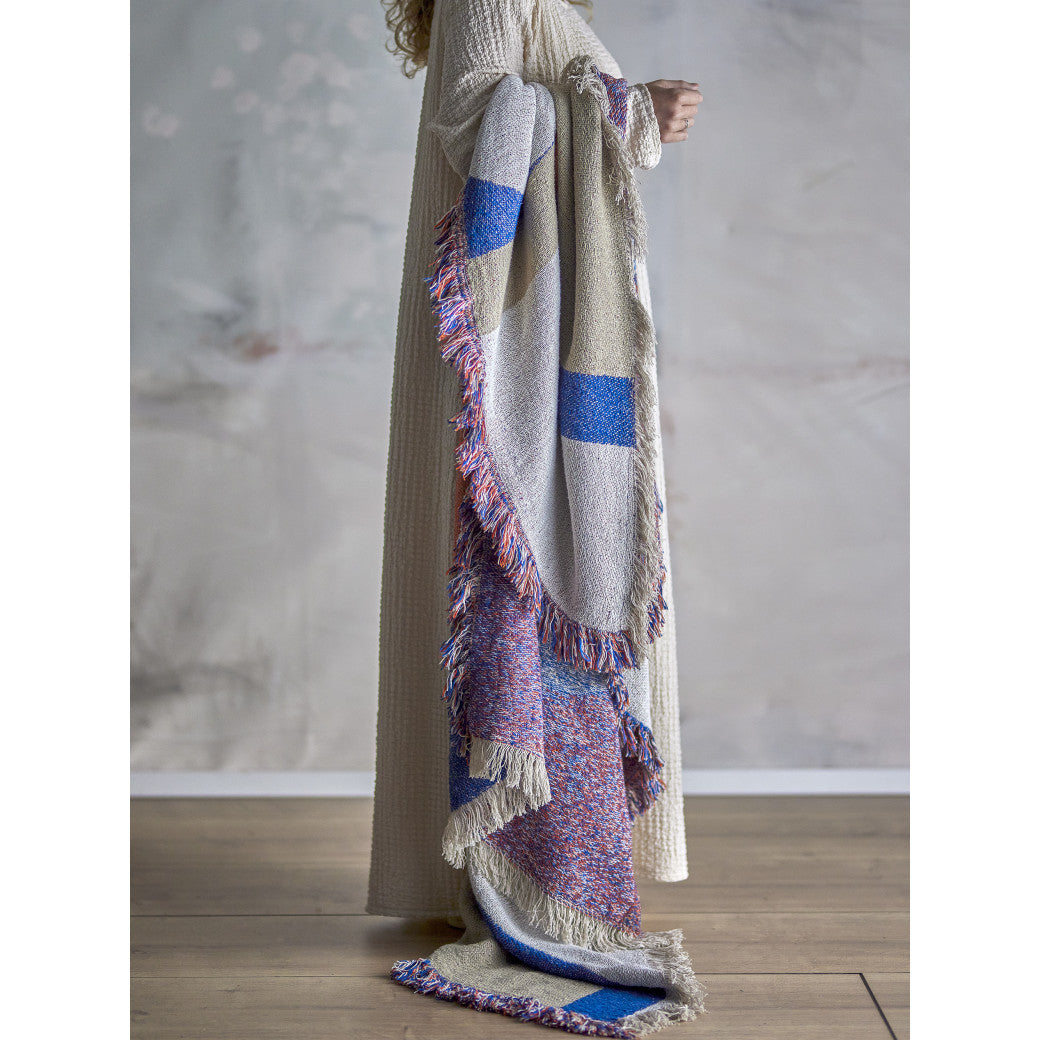 Le Plaid Clarita de Bloomingville est tissé dans des tons corail, bleu et naturels. Sa conception double face offre un aspect dynamique, avec les couleurs inversées au dos. Les franges sur les quatre côtés ajoutent une touche élégante et chaleureuse, rendant le plaid parfait pour apporter chaleur et charme à votre décoration.