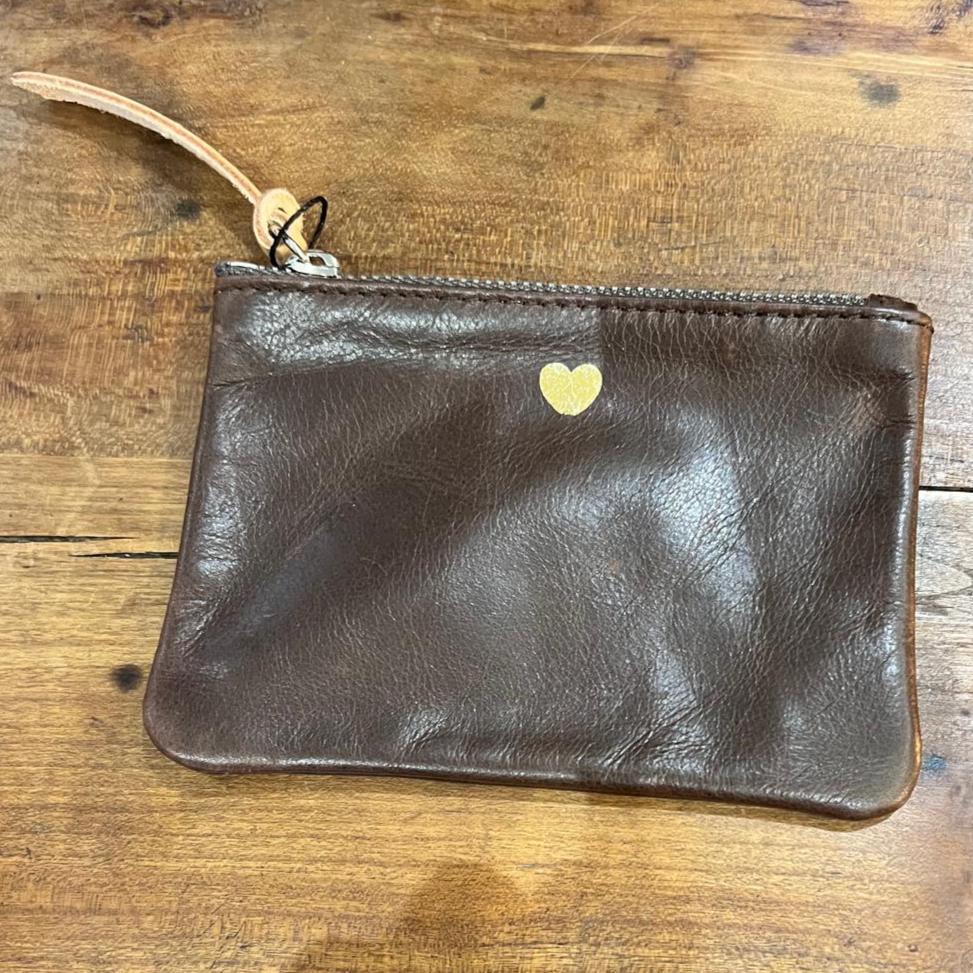 Porte-monnaie en croûte de cuir avec cœur doré.