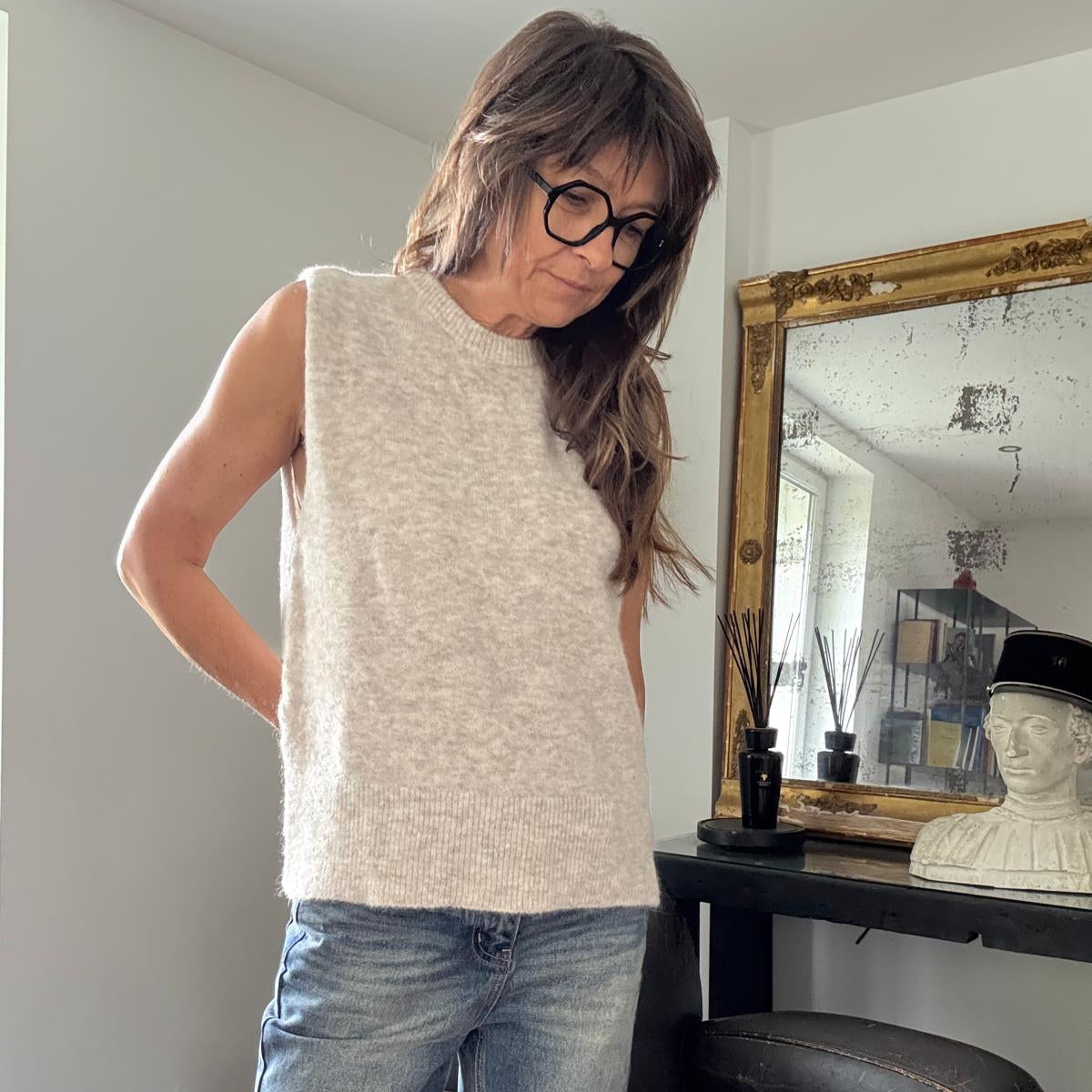 Le pull Bestia de Maison Anje est un indispensable du dressing hivernal revisité avec modernité. Sa coupe droite sans manches en fait une pièce à la fois confortable et originale, parfaite pour jouer avec les superpositions. Confectionné dans une maille douce enrichie en alpaga et laine mérinos, il allie chaleur, légèreté et style.
