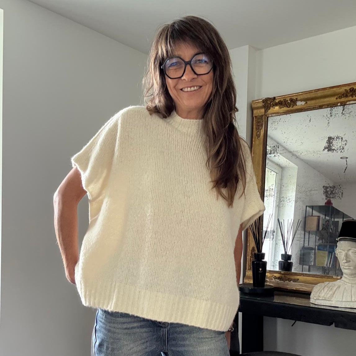 - Sans manches, facile à associer sur une chemise, un sous-pull ou une robe.