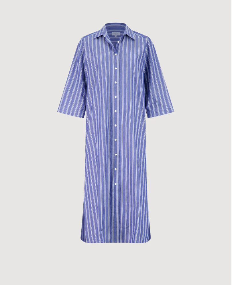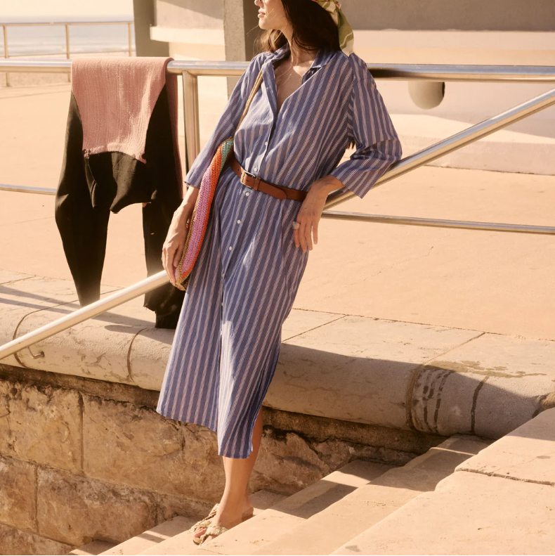 La robe-chemise mi-longue, RUNE est pensée pour allier élégance et confort grâce à sa coupe ample mais structurée. Confectionnée dans un voile de coton rayé, elle est légère et agréable à porter.