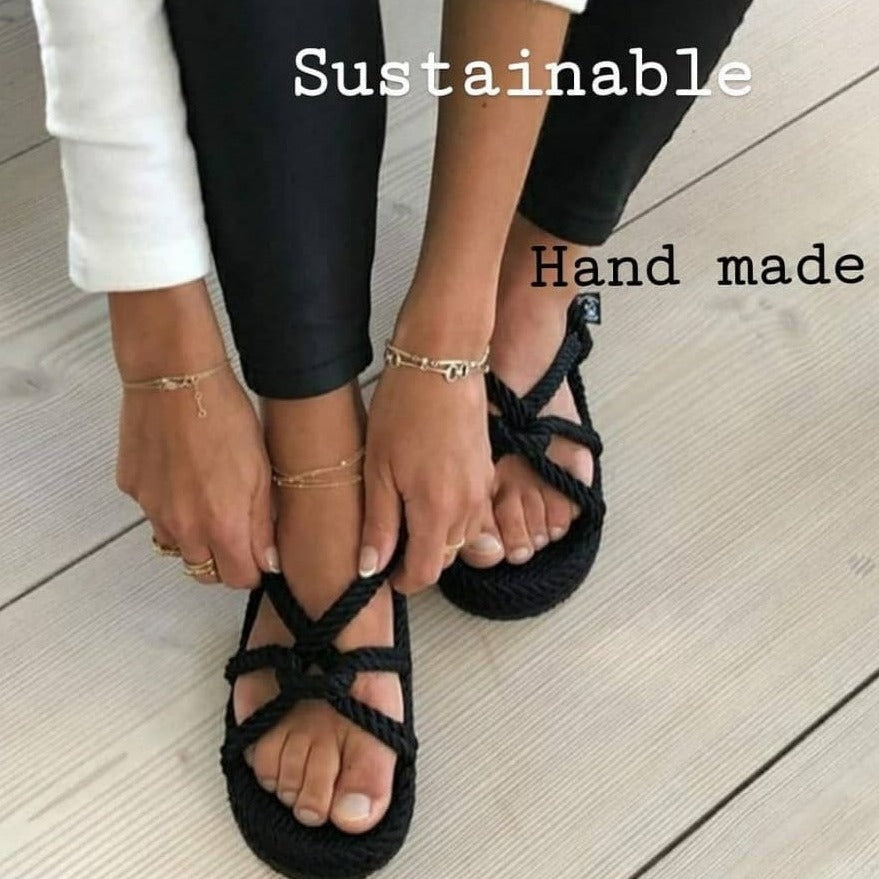 Les sandales en corde sont faites main et sont issues d ‘une production Ecoresponsable et de Commerce Équitable.