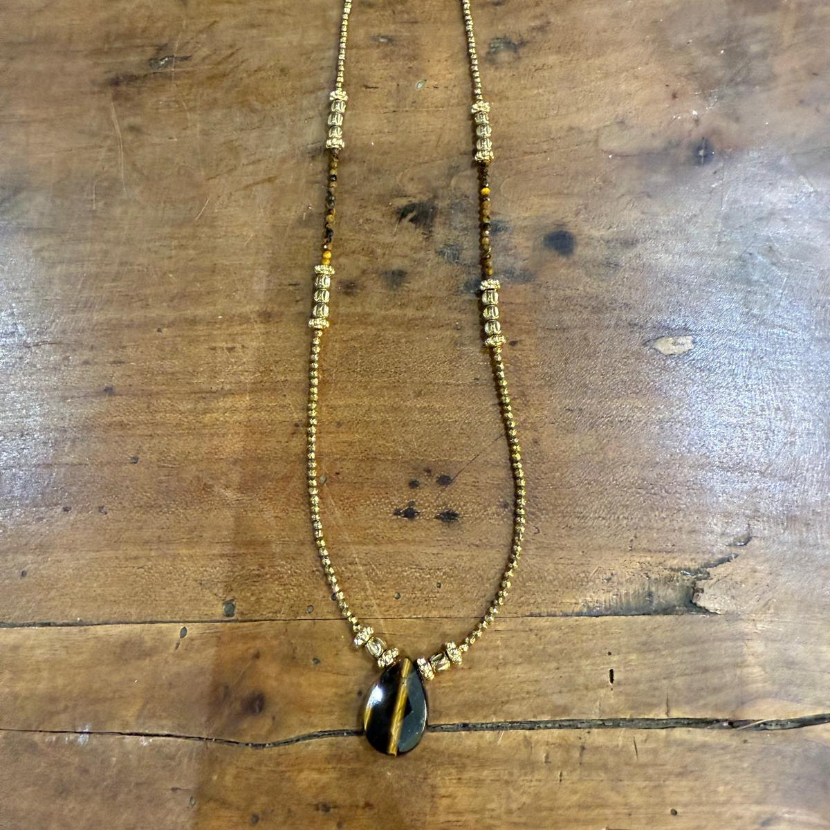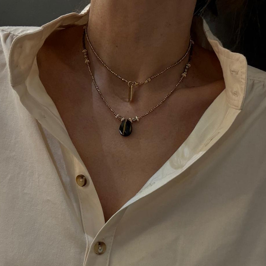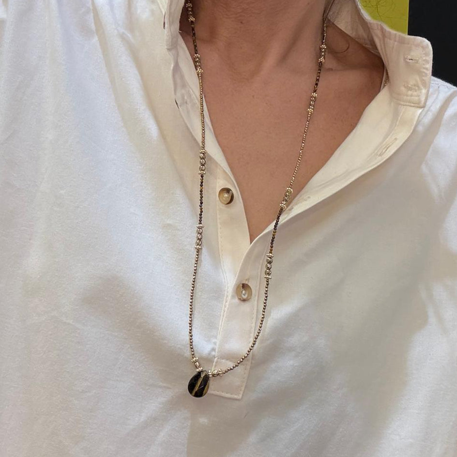 Sautoir ou double collier réalisé avec des pierres semi précieuses.