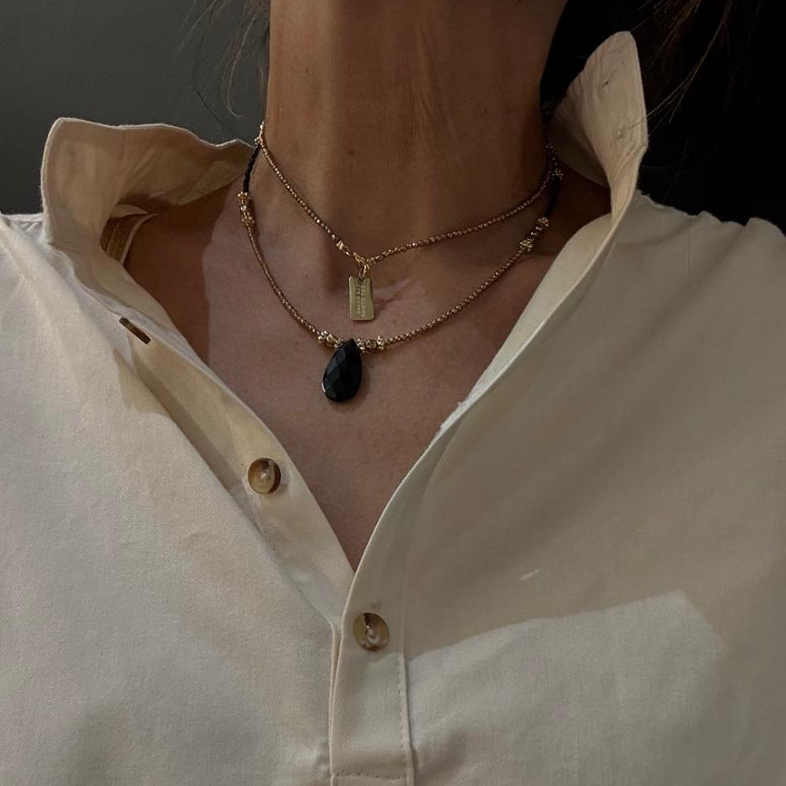 Sautoir ou double collier réalisé avec des pierres semi précieuses.
