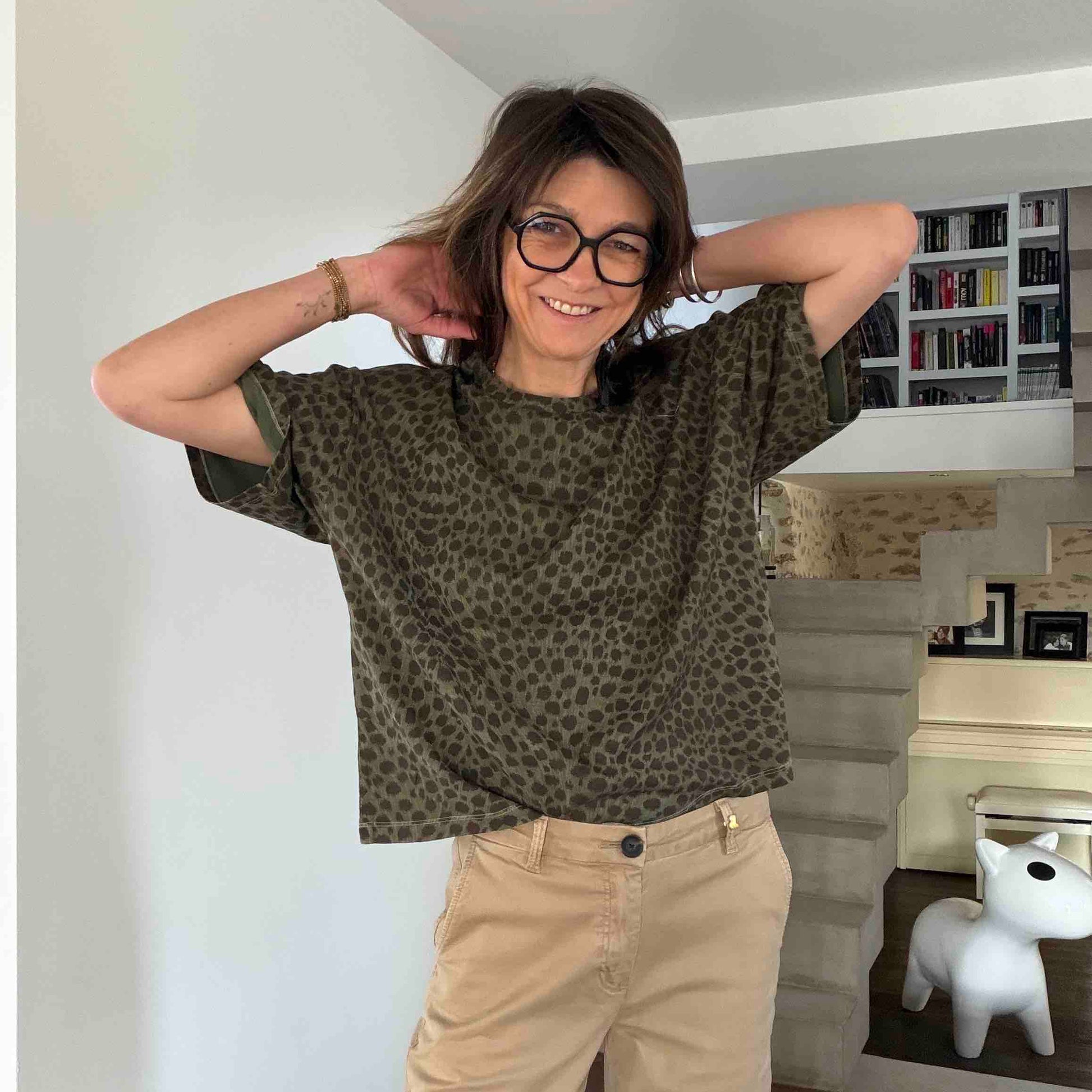Conseil de taille : si vous aimez l'oversize prenez votre taille habituelle, et dans le cas contraire prenez 1 taille en-dessous. Dominique porte le M pour son 38 habituel.