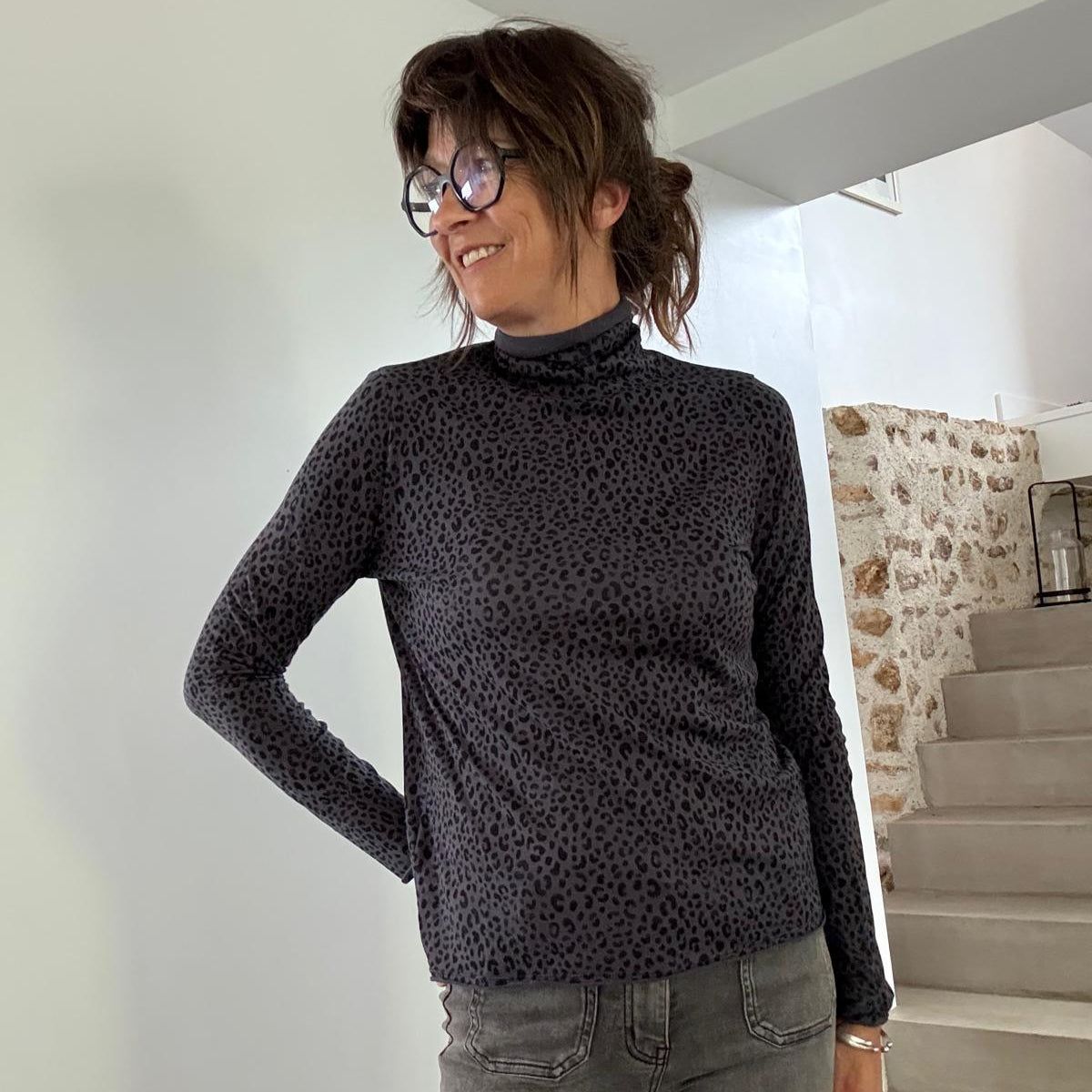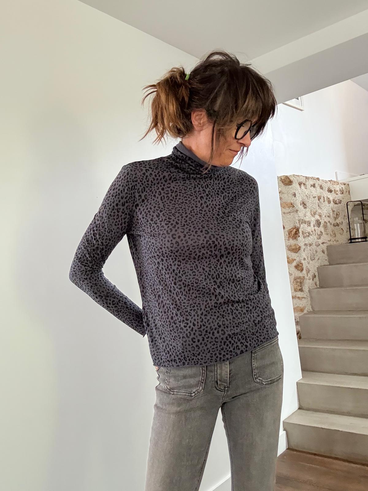 Son imprimé Léopard Petrol font de ce t-shirt à col montant un basique pas si basique!
