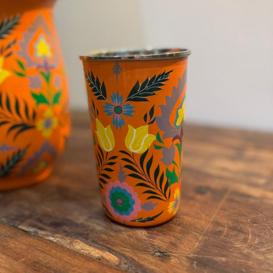 Timbale peints à la main dans dans la Région du Kashmir. Parfaite en décoration comme vase, pot à crayons, verre à dents ...