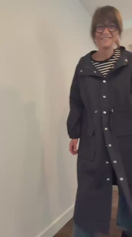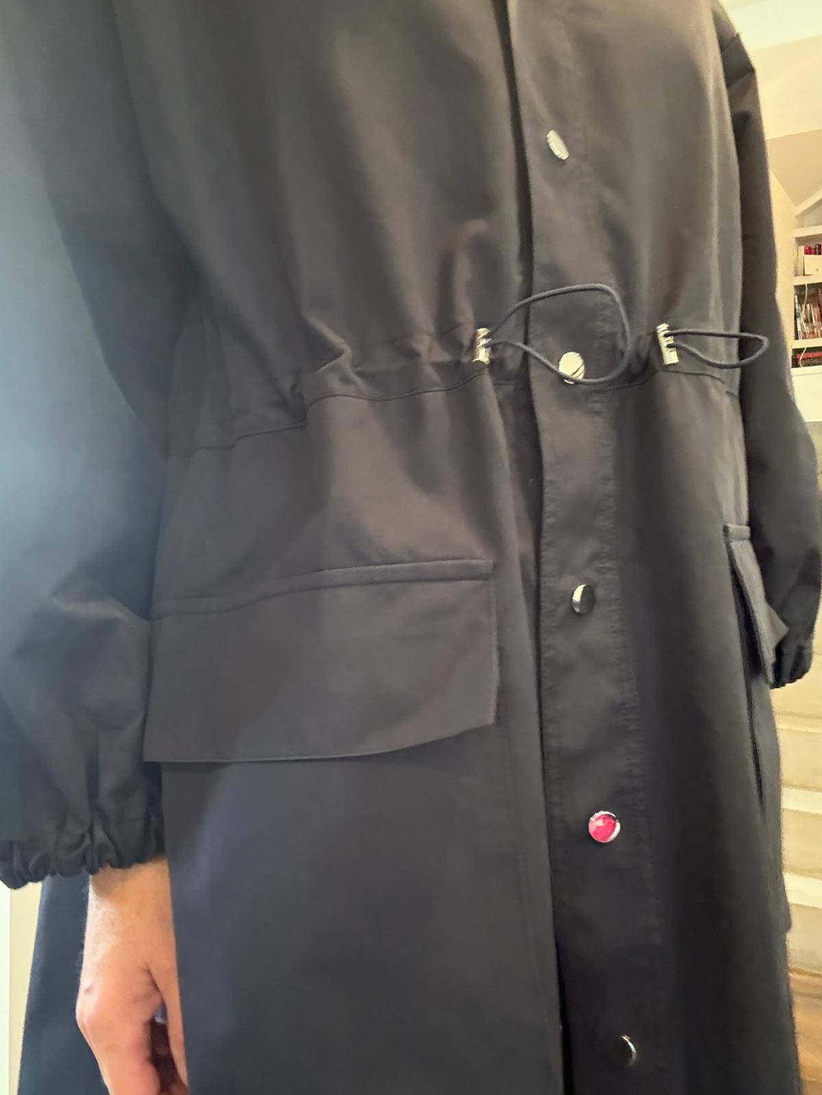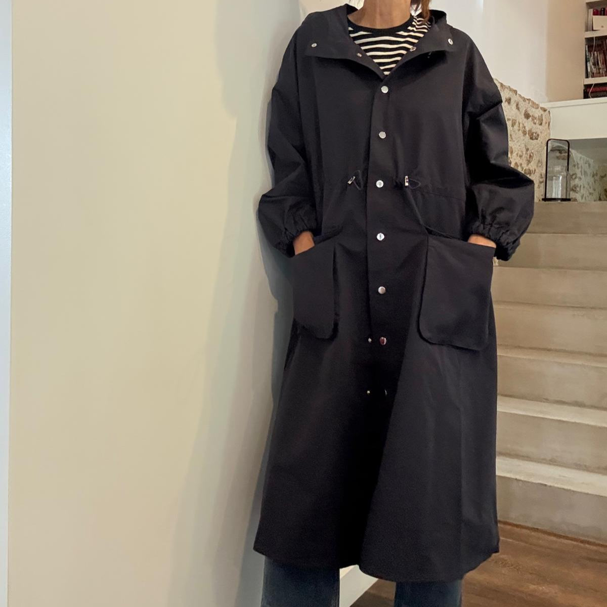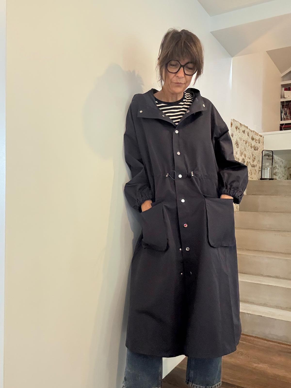 Une coupe de fou pour ce superbe trench qu'on porte aussi bien sur un look casual que working girl. Très joli tombé de manches avec poignets élastiqués, fermeture par pression, 2 grandes poches plaquées, cordon de resserrage à la taille et évidemment une capuche !