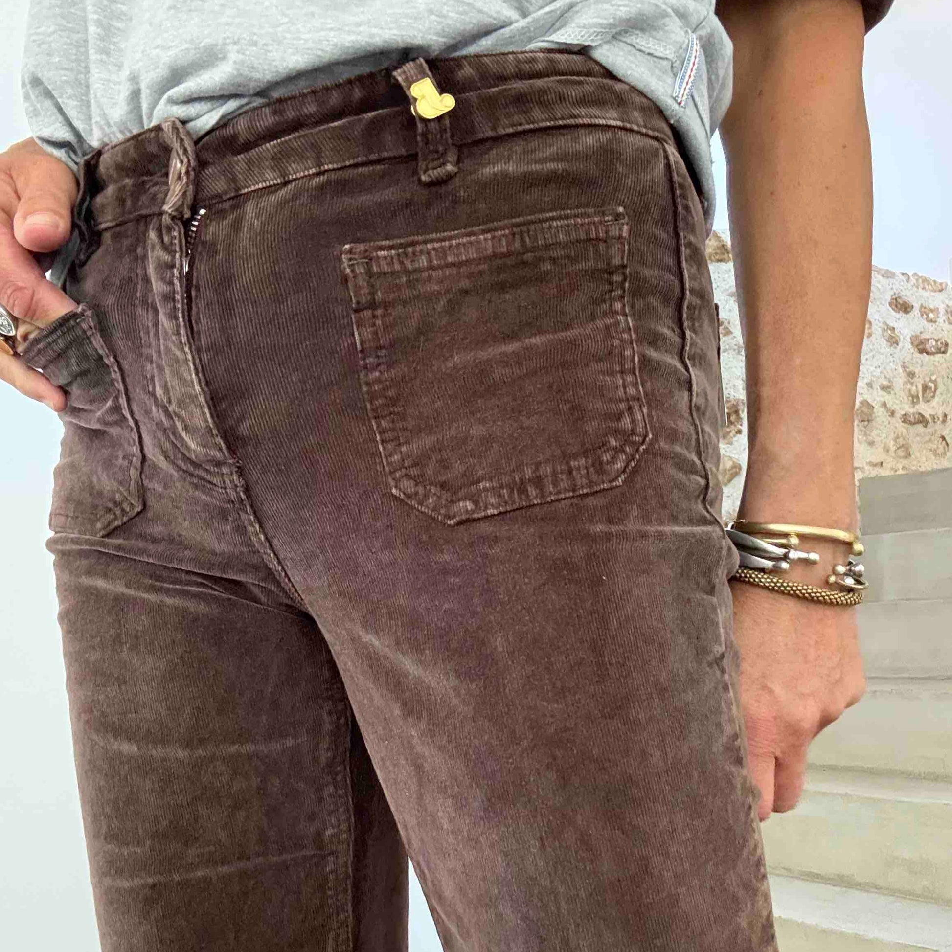 Le Bastille Jane Blue en velours milleraies qu'on attend toutes chaque hiver !!! On ne pouvait pas passer à côté de sa version choco hyper tendance cette saison, légèrement washé, super facile à porter casual ou casual plus chic avec une veste. Le Bastille Jane Blue a une coupe taille mi-haute, ajusté sur la cuisse avec un léger flare en bas de jambe, très féminin le Bastille allonge et sublime la silhouette tout en vous apportant beaucoup de confort avec son élasthane.