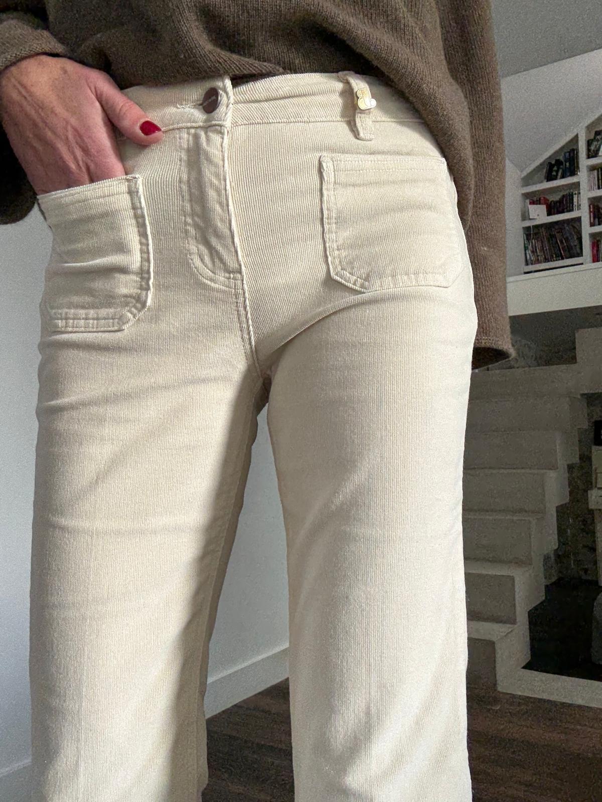 Le Bastille Jane Blue en velours milleraies qu'on attend toutes chaque hiver !!! On ne pouvait pas passer à côté de sa version écru hyper tendance cette saison, super facile à porter casual ou casual plus chic avec une veste. Le Bastille Jane Blue a une coupe taille mi-haute, ajusté sur la cuisse avec un léger flare en bas de jambe, très féminin le Bastille allonge et sublime la silhouette tout en vous apportant beaucoup de confort avec son élasthane.