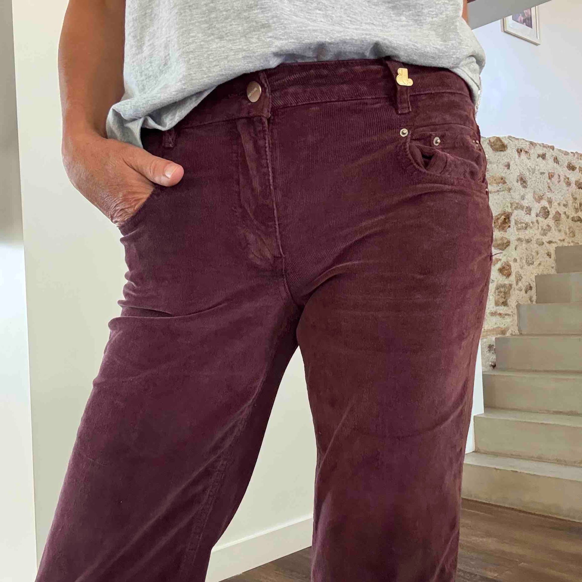 Le Beaugrenelle Jane Blue cette fois en en velours milleraies aubergine, pile dans le tendance de la saison. Légèrement washé le Beaugrenelle se porte aussi bien au bureau qu'en week-end. Le Beaugrenelle de Jane Blue a une coupe taille mi-haute, coupe droite sur la jambe. Facile à porter et féminin, sa couleur aubergine se marie aussi bien avec du beige que du gris, du jean et du carbone. Comme d'habitude avec Jane Blue on retrouve beaucoup de confort grâce à son élasthane.