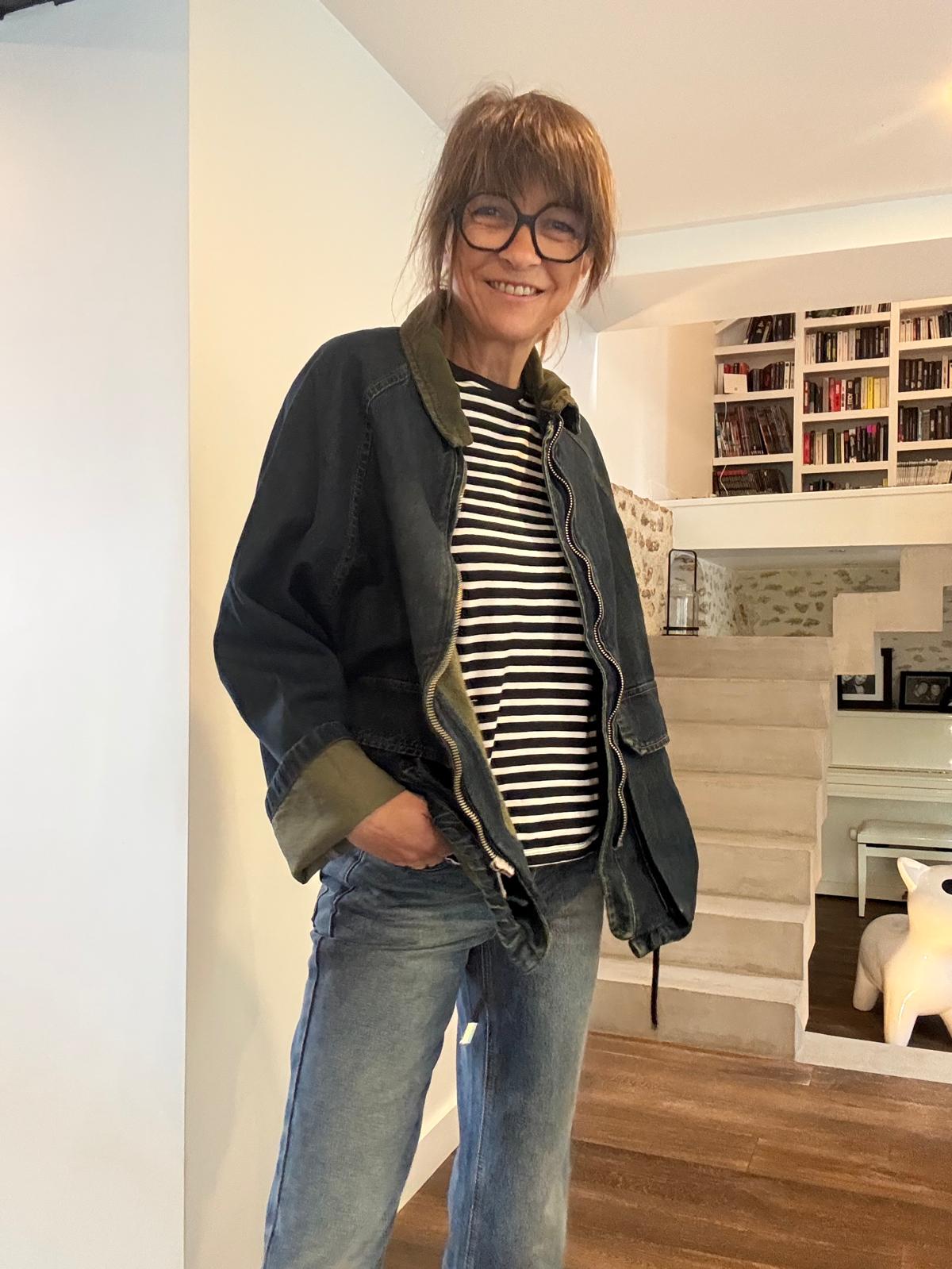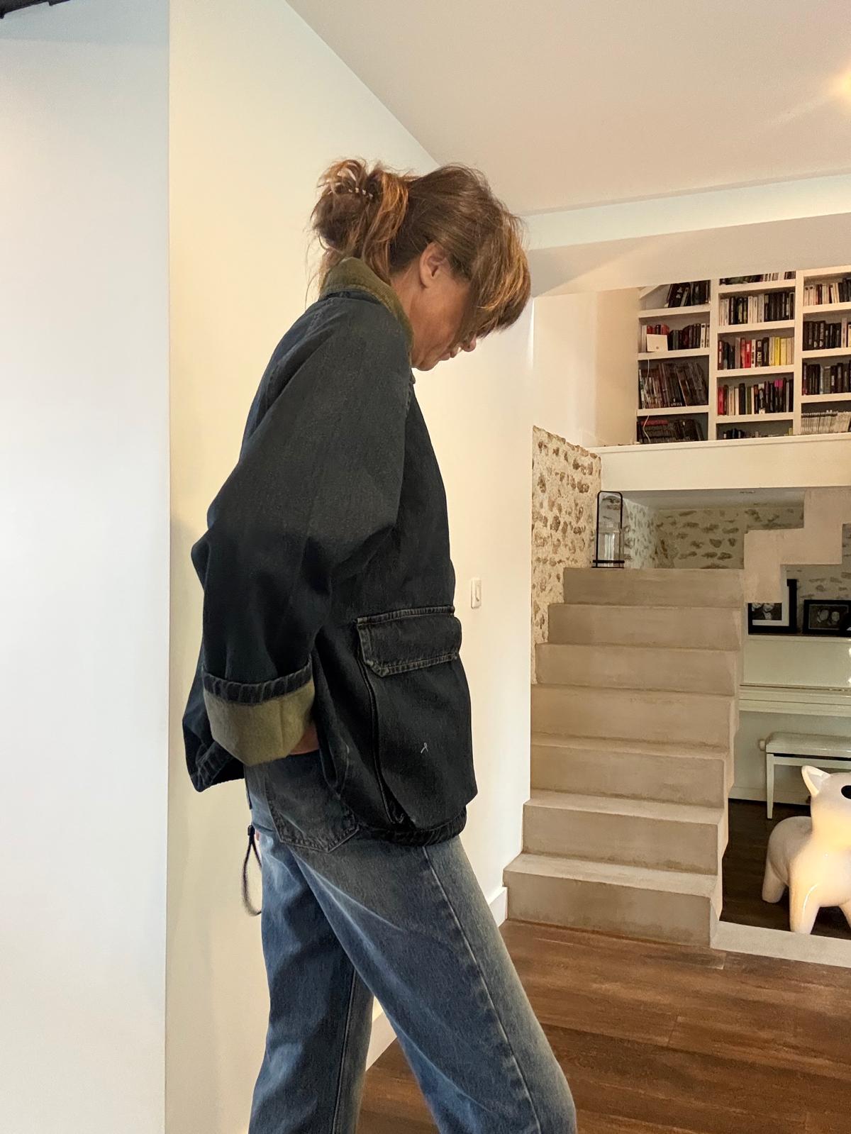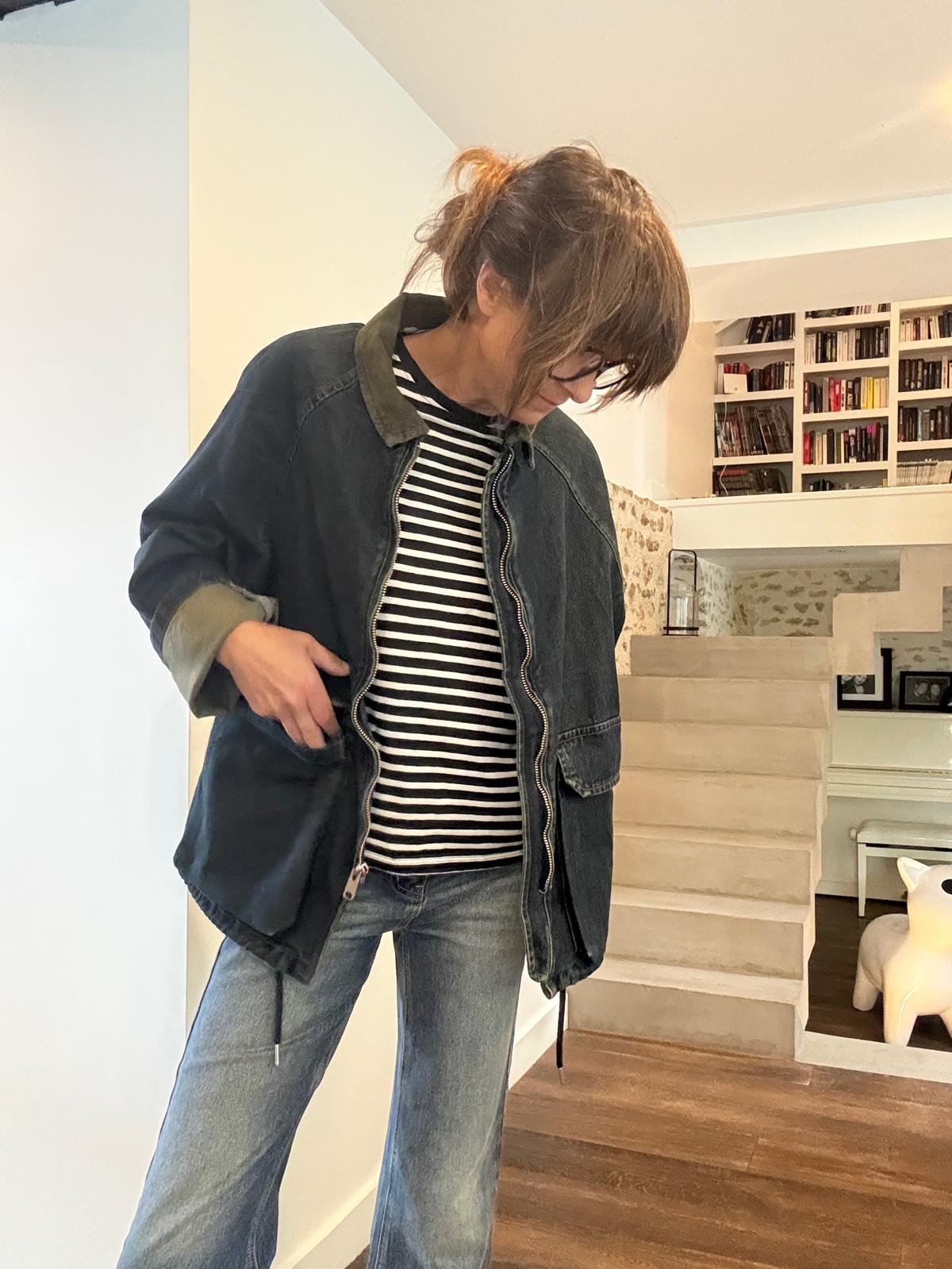 Coup de coeur pour la veste barboum au look british décalé! La Barboum est en jean brut avec une légère teinture kaki en rappel au col en velours kaki, qui lui donne un côté vintage chic. Elle se porte avec le bas de manche retourné pour plus de style. 2 grandes poches plaquées, lien de resserrage en bas (mais on la préfère non resserrée). Le jean est très souple et très agréable à porter.