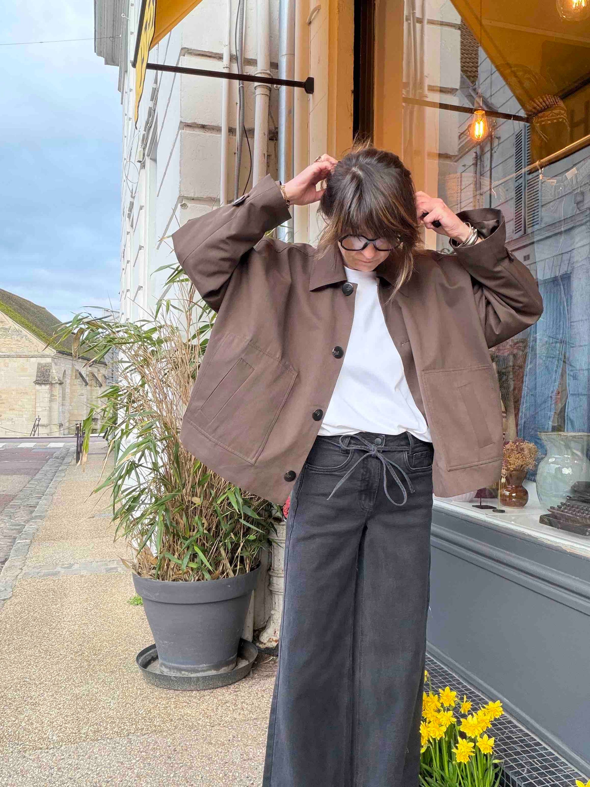La veste mi-saison ultra facile à porter c'est la Lyon : une coupe oversize très japonisante dans la couleur chocolat qu'on retrouve sur ce printemps été et qu'on retrouvera aussi à l'automne prochain. Avec son toucher tencel elle est tellement douce et agréable à porter... bref on l'a adoptée la veste Lyon !